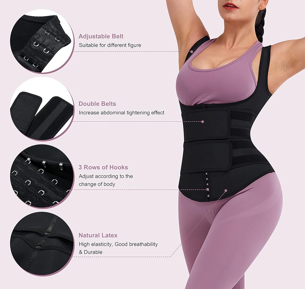 2. تصميم أنيق لحزام الخصر مشذب للبطن: ملابس ضغط من نسيج لاتكس للتحكم بإحكام في الخصر، وتسطيح المعدة ورفع بطنك. 3 صفوف من الخطاف تحافظ على ملاءمة محكمة حول خصرك لتحقيق تأثير الخصر طويل الأمد مع فقدان الوزن. 9 عظام حلزونية من الصلب تجعل دعم الخصر والبطن أكثر فعالية.