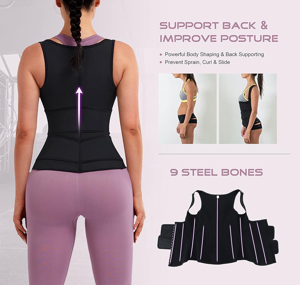 4. شكل الجسم المنسدل يعزز التمارين: هذه السترة ذات الحجم الكبير لشكل الخصر بتصميم أسفل الصدر والتي يمكن أن تعطي دعمًا إضافيًا لثديك. سترة تدريب الخصر تحافظ على جسمك بشكل مريح ومريح دون تقييد أو إعاقة الحركة، ومن ثم يمكنك التركيز على التمرين وتفقد سنتيمترات أسرع من أي وقت مضى.