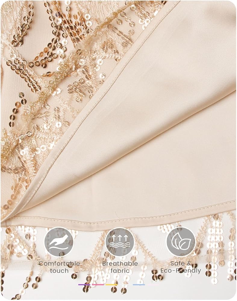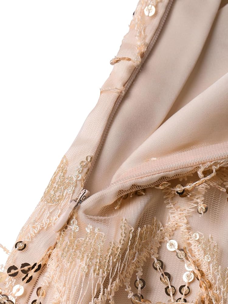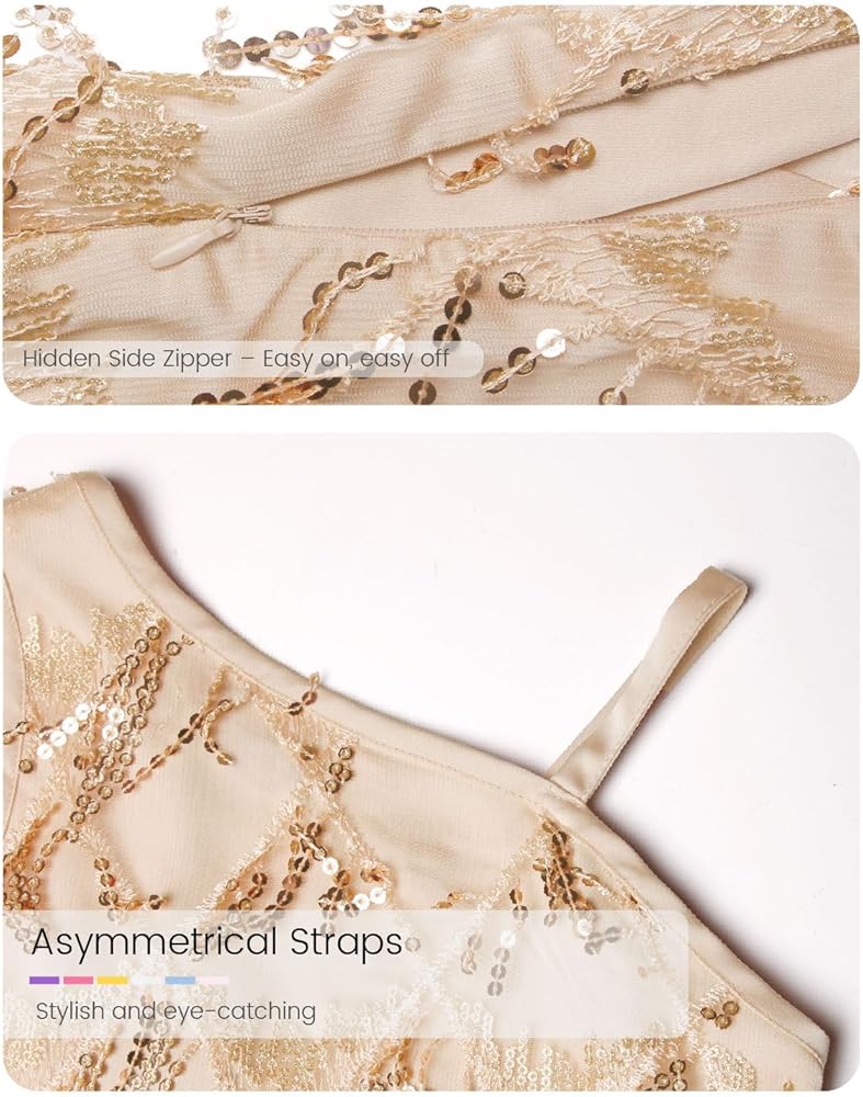 【تصميم أنيق مع الذوق العتيق】 يتميز بخط العنق غير المتماثل الجريء ، ونمط الترتر الماس المعقد ، والهاموس المرح في صورة ظلية مستوحاة من العشرينات من القرن العشرين. يضمن سحاب الجانب المخفي سهولة خلع الملابس دون المساس بالشكل الأنيق.