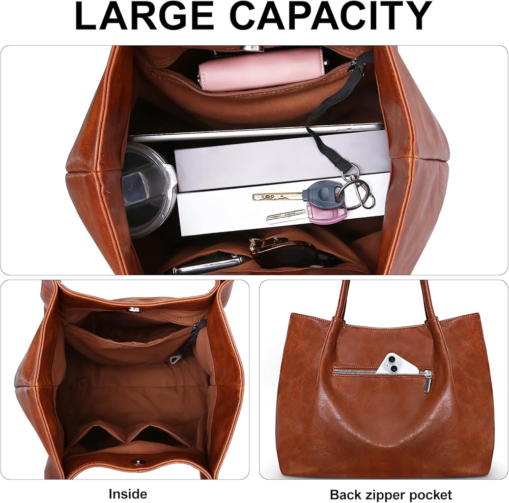 • التصميم الأنيق: إن التصميم العصري لحقيبة يد السيدات يضيف لمسة من الأناقة إلى أي جماعة. سواء كنت ترتدي ملابس أو غير رسمية ، فإن حقيبة حمل الجلود الكبيرة هذه تكمل مظهرك أثناء توفير الوظائف