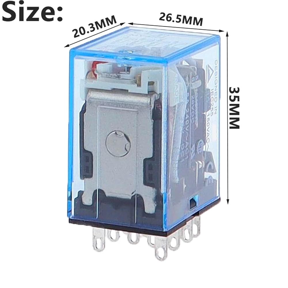 Discover the reliability and versatility of our MY4NJ General Small Electromagnetic Power Relay, designed to meet a wide range of industrial and commercial applications. This high-quality relay features a compact design with dimensions of approximately 3.4 x 2.7 x 2.1 cm, making it easy to install in tight spaces while delivering robust performance. The MY4NJ relay is equipped with a 4PDT (4 Pole Double Throw) action, offering both 4NO (Normally Open) and 4NC (Normally Closed) contacts, providing flexibility for various switching needs. It operates efficiently with a coil voltage range of AC12V, 24V, 110V, and 220V, ensuring compatibility with different power systems. With a contact voltage capacity of 5A at 240V AC or 28V DC, this relay is suitable for low-power applications while maintaining a high level of performance. The silver alloy contact material ensures excellent conductivity and durability, supporting an electrical life of over 100,000 operations. The relay is designed for ease of use and installation, featuring a 14-pin configuration and compatibility with a 35mm DIN rail mount. Its operating temperature range of -25°C to +55°C ensures reliable performance in diverse environmental conditions. The built-in LED indicator provides a clear visual indication of the relay's working status, enhancing operational safety and convenience. Encased in an epoxy protective shell, the relay offers enhanced durability and resistance to environmental factors. Choose our MY4NJ Power Relay for a dependable, efficient, and versatile solution to your switching needs, backed by its robust construction and reliable performance.