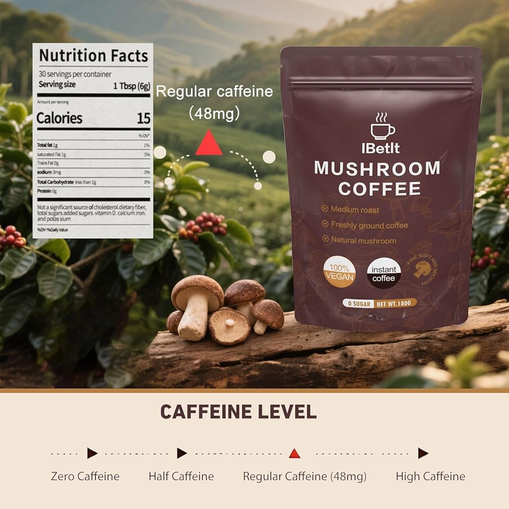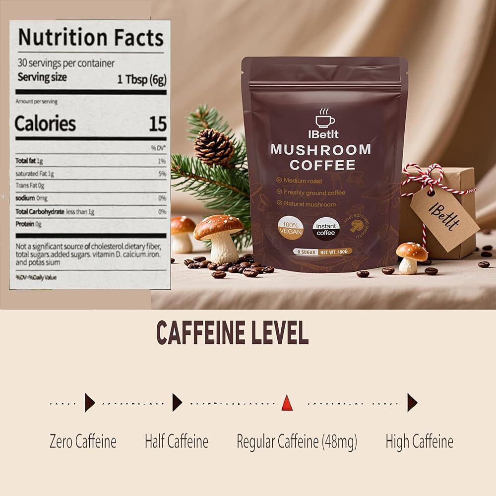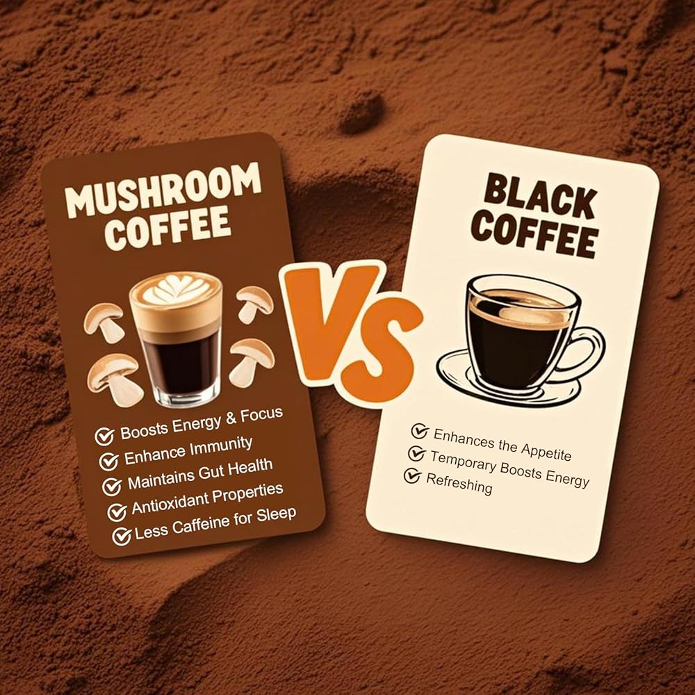 مجموعة مكونات فريدة من نوعها: مصنوعة مع الفطر المتميز ، حبوب القهوة أرابيكا ، زيت MCT ، وحليب جوز الهند ، المخصب بمقتطفات من كورديسيب ، ريشي ، ماني الأسد ، شيتاكي ، ذيل الديك الرومي ، وملك بوق الملك