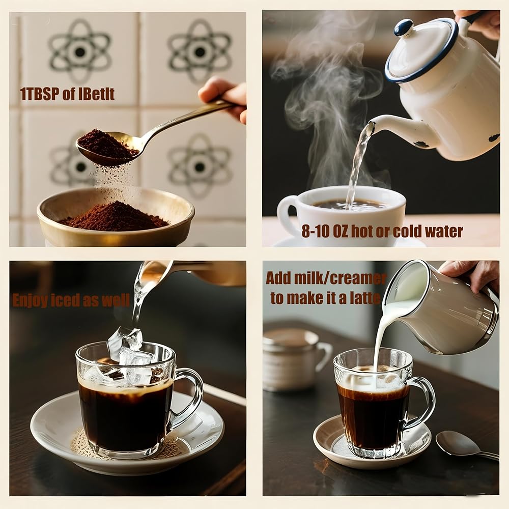 سهل الخمر: اخلطي 1 ملعقة كبيرة (6g) مع ماء ساخن/مثلج من 8 إلى 10 أوقية ، أضف كريمة أو حليب وفقًا لتفضيلاتك