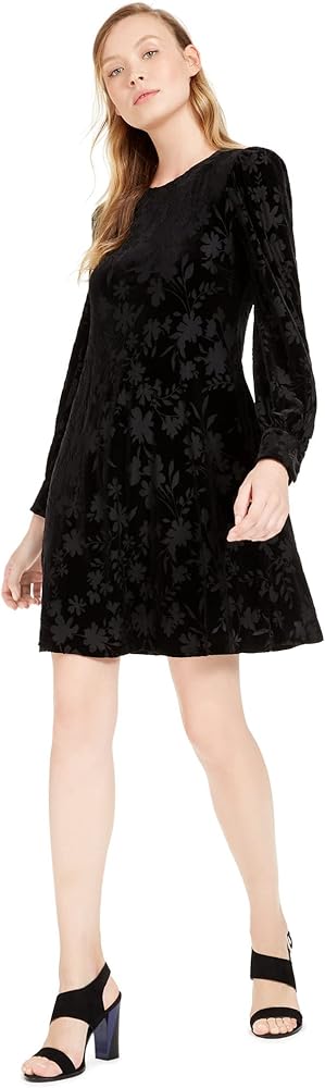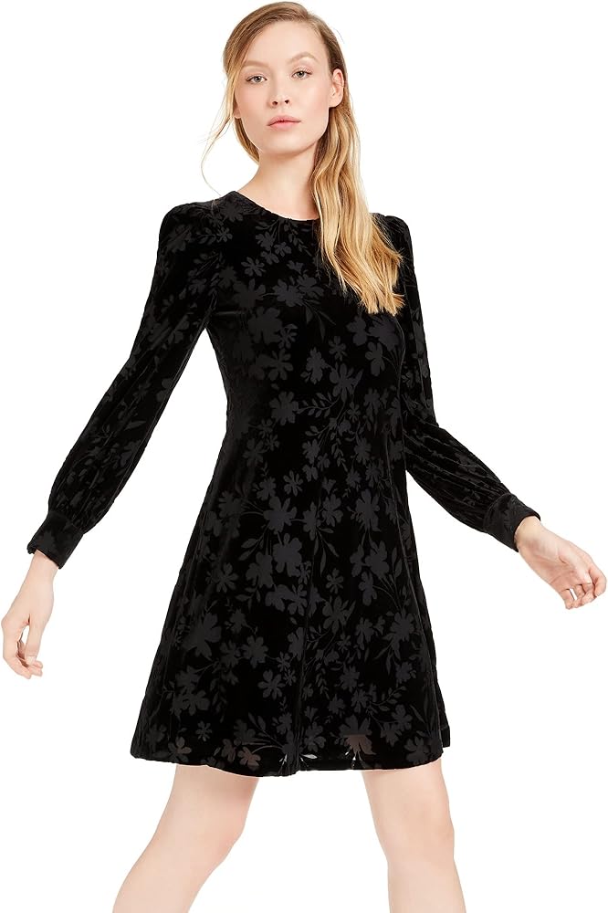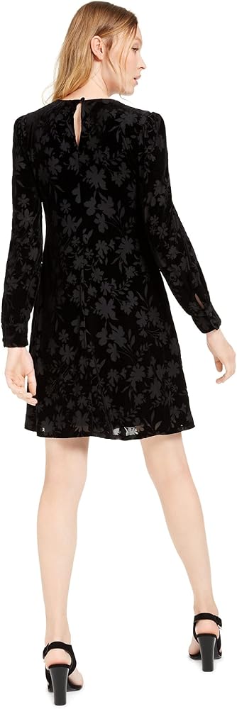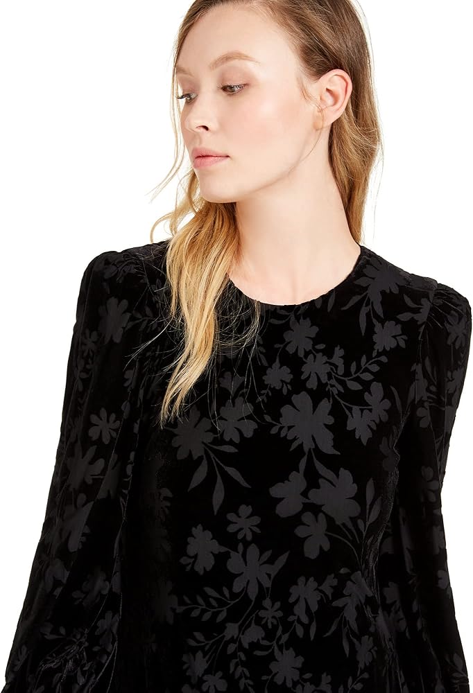فستان كالفن كلاين نسائي مخملي مزين بالزهور باللون الأسود 2