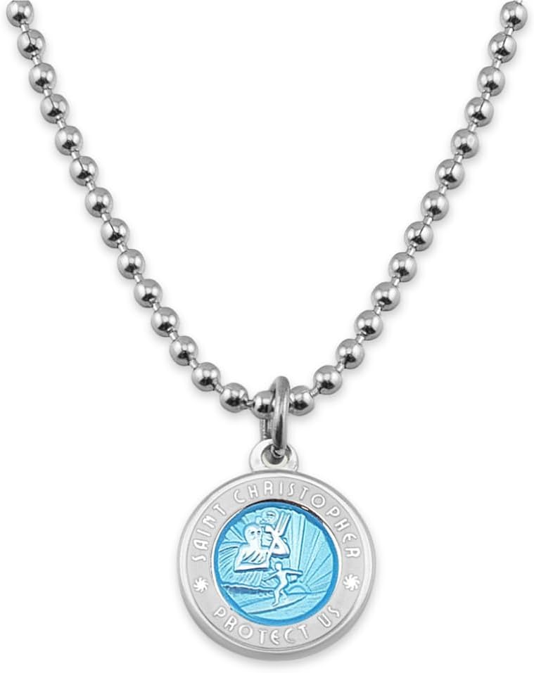 احصل على قلادة عودة سانت كريستوفر قلادة الأمواج | صغيرة ، "ميدالية مطلية بالفضة ، 18" سلسلة كرة ألومنيوم in Kuwait