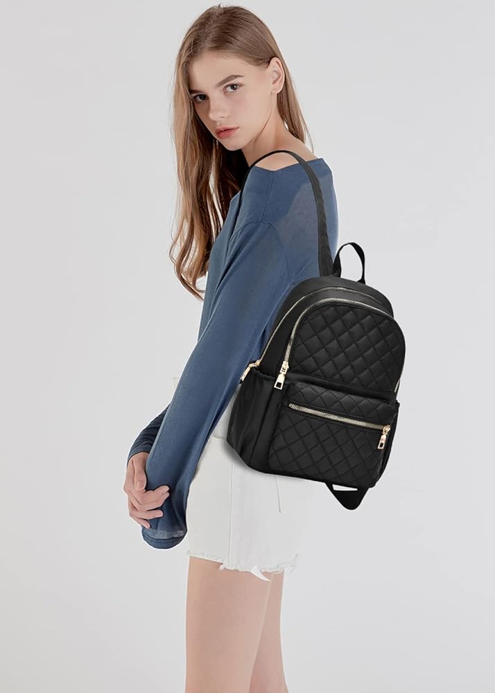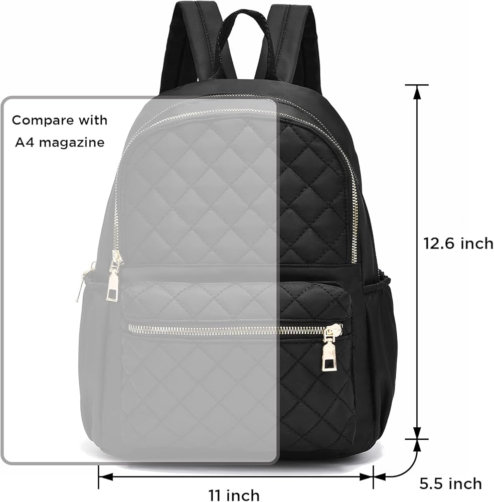 مادة خفيفة الوزن: حقيبة ظهر من نسيج النايلون المتين والصديق للبيئة وخفيفة الوزن للنساء والفتيات، مع تصميم خياطة مبطنة، حقيبة ظهر كاجوال متوسطة الحجم مع مساحة كافية لتنظيم مستحضرات التجميل أو الكتب أو الإكسسوارات أو الملابس أو الهاتف أو غيرها من الضروريات اليومية.