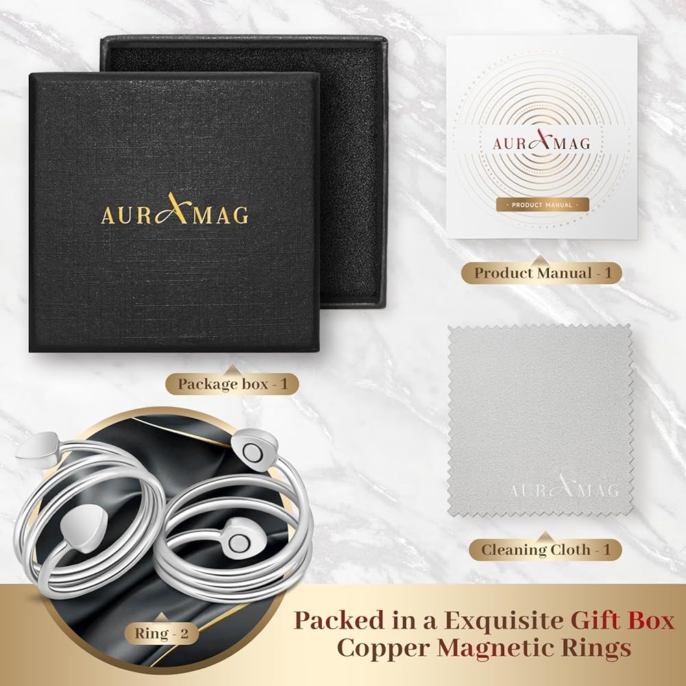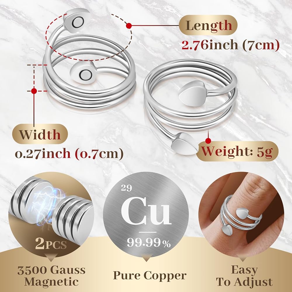 حلقات النحاس عالية الجودة: كل حلقة مغناطيسية نحاسية مصنوعة بالكامل من النحاس عالي الجودة ، والتي تتمتع بمتانة ممتازة ولا يتم كسرها أو تشوهها بسهولة عند ارتداءها لفترة طويلة. إنه خالي من الرصاص وخالي من النيكل ونقص الصالح والآمن للبشرة الحساسة.