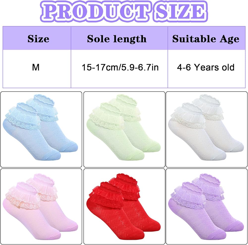• 【معلومات الحجم】 تم تصميم الجوارب الكشكشة الفتيات بحجم S ، مناسبة للأطفال الذين تتراوح أعمارهم بين 1-3 ، مع طول وحيد 12-15 سم وعرض جورب 5.5 سم. تم تصميم الحجم بعناية ، والجوارب الدانتيل للفتيات ليست ضيقة للغاية ولا فضفاضة للغاية ، والتي تلبي بالكامل احتياجات أقدام الأطفال. يوفر النسيج المرن العالي شعورًا مريحًا باللف. لن يشعر الطفل بالقمع أو عدم الارتياح عند ارتدائه ، وهو مناسب جدًا للارتداء والأنشطة اليومية
