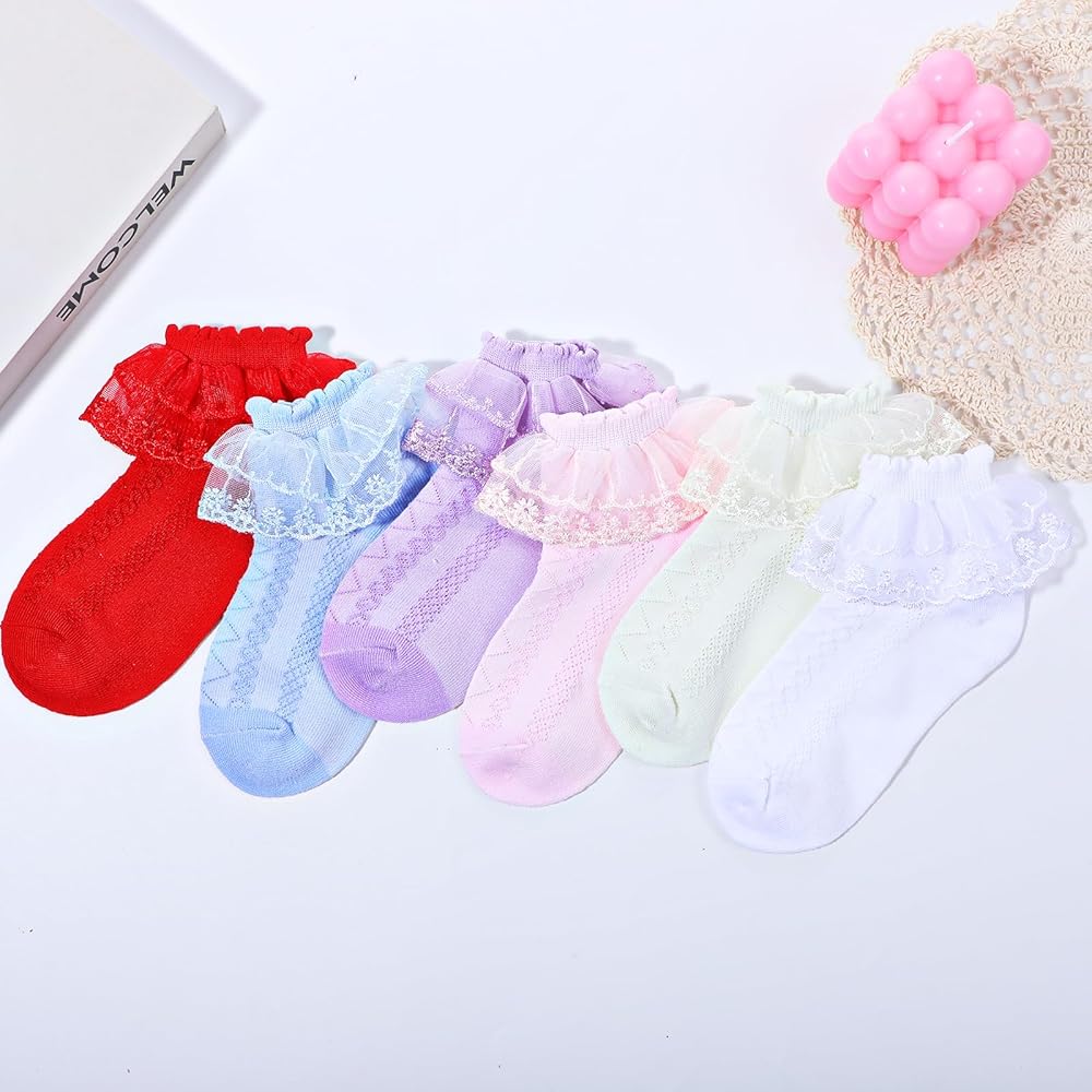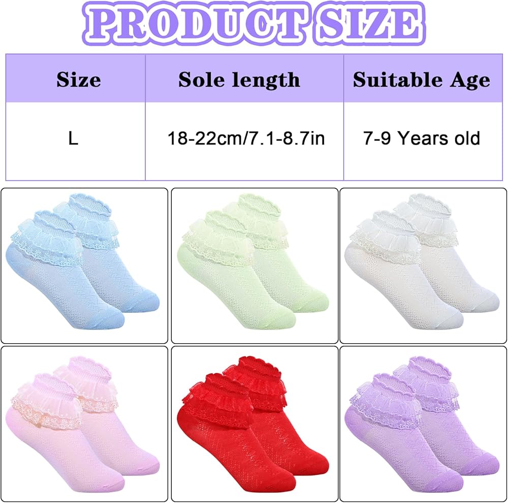 • 【محتوى الحزمة】 جوارب الكشكشة للفتيات تأتي في ستة ألوان لطيفة ، وهي الوردي والأصفر والأبيض والأحمر الساطع والأزرق والأرجواني. التصميم مليء بالحيوية والحلاوة. كل لون من جوارب كشكش الأطفال مشرقة للغاية ويمكن مطابقتها مع أنماط ملابس مختلفة لتلبية احتياجاتك اليومية المختلفة