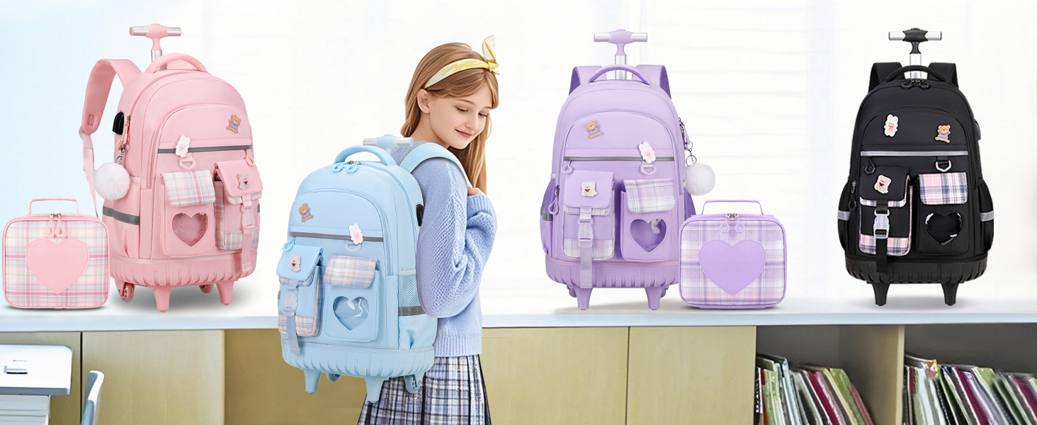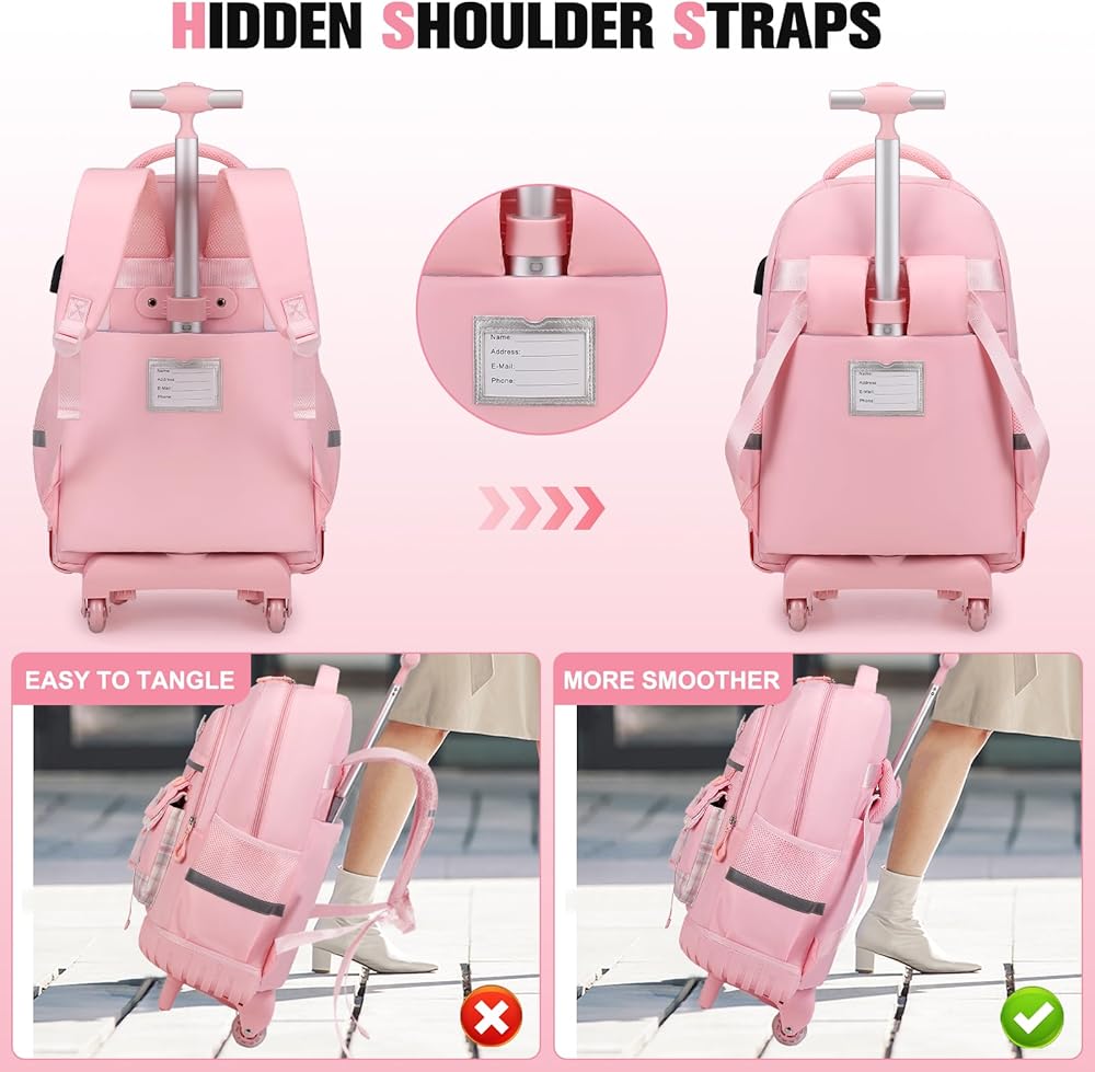 【حقيبة الظهر المريحة و Durale】 استخدمت حقيبة الظهر المتداولة للنساء والفتيات مواد عالية الجودة وسميكة ، ودائمة ، ومضادة للخلع ، ومقاومة للبلاش ، ومتسقة في الماء ، وسهلة التنظيف. هذا الأطفال يتدحرجون على ظهر الظهر بعجلات مزدوجة ، انزلاق سريعًا ، وليس عالقًا ، مقاومًا للارتداء. يمكن تعديل ارتفاع T-Tandle القابل للسحب مع قبضة مريحة لجعل حقيبة الظهر ذات العجلات متينة.