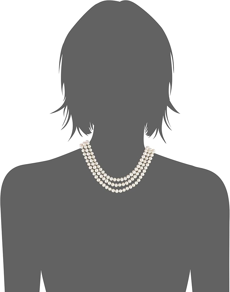 Prolific with pearls, this three-row necklace makes an exceptional gift. Radiant white freshwater cultured pearls, with a diameter of 6.5 to 7mm, are double-knotted on silk cord to form three perfectly graduated strands, with lengths of 17, 18, and 19 inches. This lavish necklace drapes beautifully and offers a full look and a gorgeous luster that will set off the most elegant ensemble. It closes with a decorative tube clasp made from bright and tarnish-resistant rhodium-dipped sterling silver. A perfect accessory for a sweater set or little black dress, this necklace features three rows of lustrous freshwater pearls, providing the wearer with effortless mid-century glamour.The natural properties and process of pearl formation define the unique beauty of each pearl. The image may show slight differences in texture, color, size, and shape.Carved rings are naturally occurring imperfections that result from the pearl rotating inside the mollusk as it is growing. They define the unique beauty of each pearl and may vary in size, number, and depth per pearl.Imported