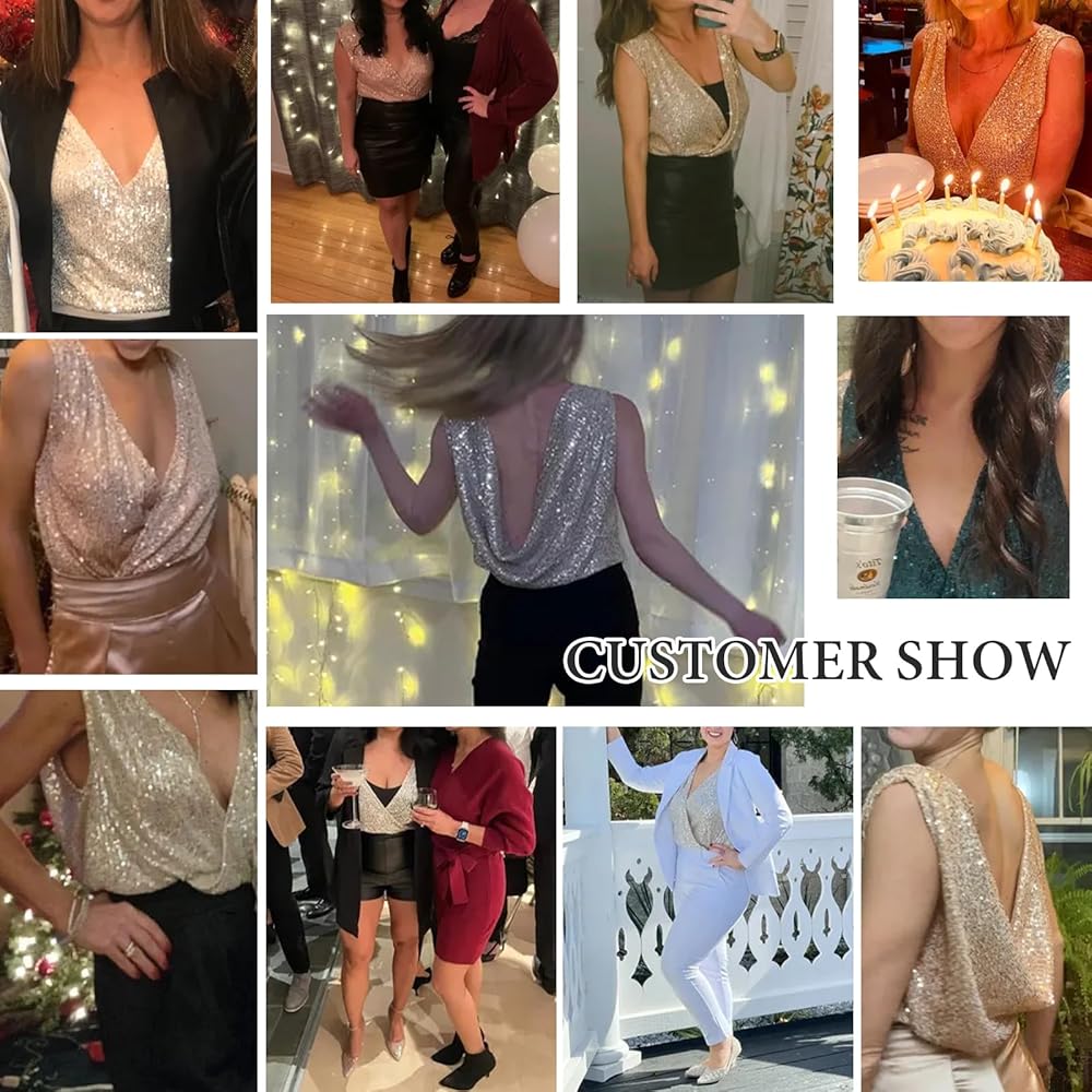 • ميزات رائعة - قميص علوي مزين بالترتر، سالوبيت لامع للنساء، سالوبيت بدون أكمام للنساء، قميص بدون أكمام، سالوبيت برقبة عميقة على شكل حرف V، قميص بدون أكمام منسدل بدون ظهر، بدلة مثيرة للنساء. مصنوعة من قماش عالي الجودة، هذه القمصان اللامعة للسيدات ليست أنيقة فقط ولكنها أيضًا مريحة في الارتداء، وسهلة الارتداء والخلع. التصميم بدون أكمام والصورة الظلية الجذابة يجعلها مثالية لإظهار منحنياتك