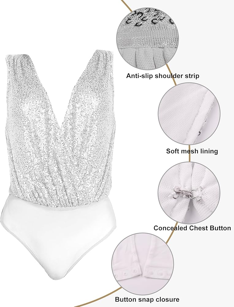 • تصميم مريح - بدلة الجسم بالترتر مبطنة بالكامل، ومساحة بطانة ناعمة خارج الطبقة المرصعة بالترتر تمنع الحكة من الترتر. مقاس عادي قابل للتمدد، قمصان فاخرة رائعة لمختلف الحفلات، ساحرة جدًا