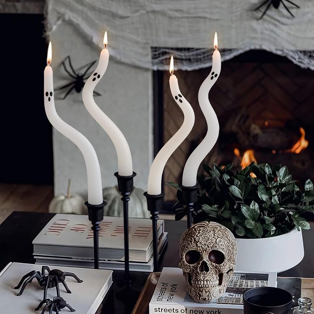 ديكورات الهالوين الداخلية - 4 حزمة شبح لطيف شبح شموع - القطع المركزية الهالوين للجداول - تزيين الشمعة الملتوية لطاولة الرفخ - أشباح أشباح أكثر