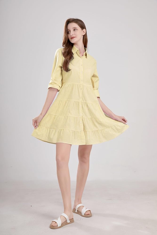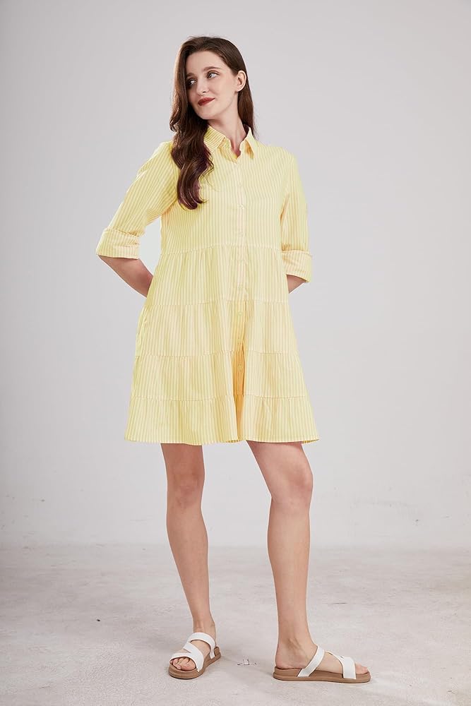 【النسيج الممتاز】 فستان قميص الكنز المخطط المصنوع من نسيج ناعم وصديق للبشرة ، وهو خفيف الوزن والتنفس ، مما يوفر لك تجربة ارتداء ممتعة.