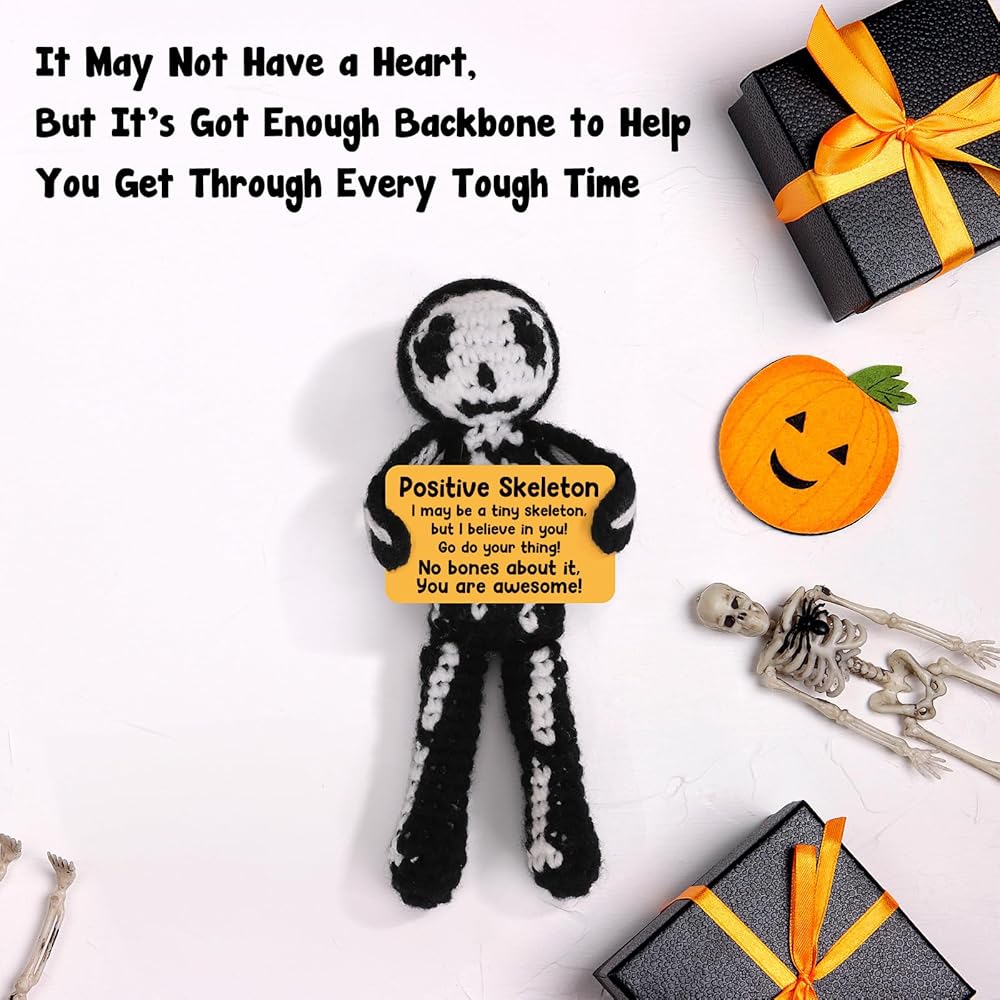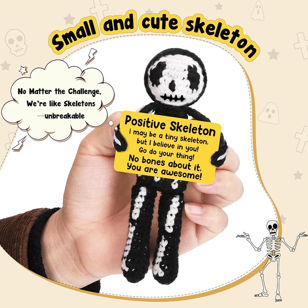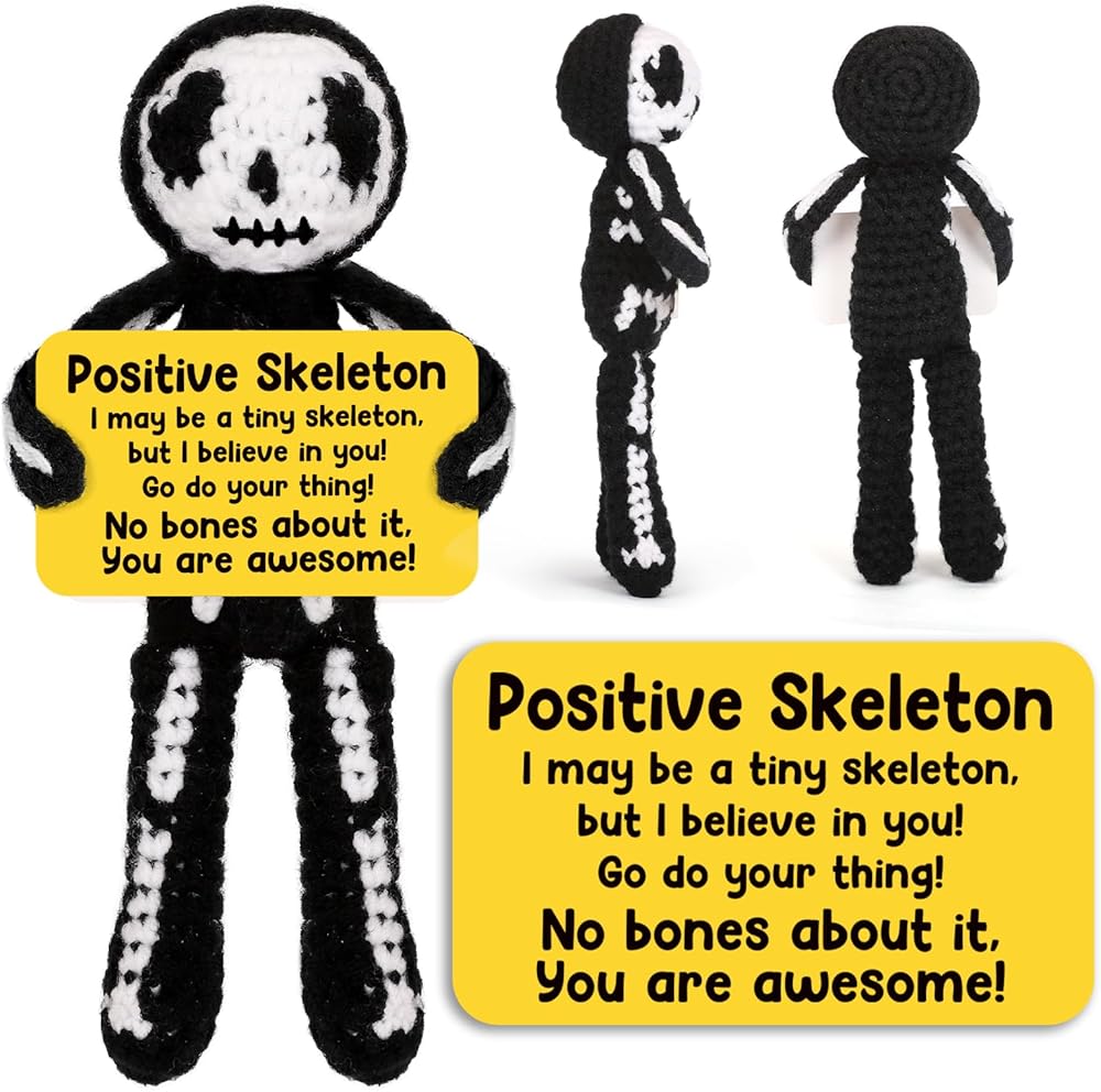هدايا كروشيه إيجابية هيكل عظمي هدايا عيد ميلاد عيد ميلاد تقدير الأسبوع هدايا التخرج للنساء الرجال له ، هالوين قوطية ديكور خمر ، مراهقة صبي ديكور غرفة