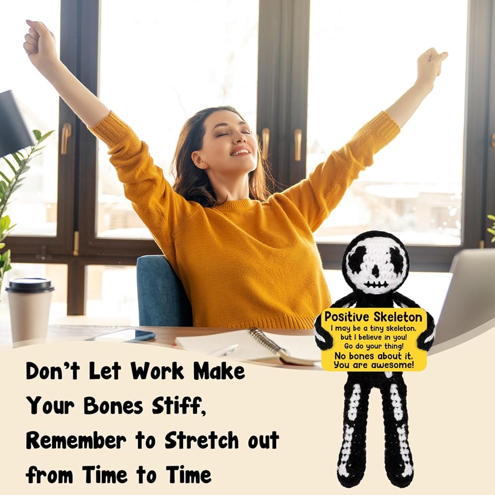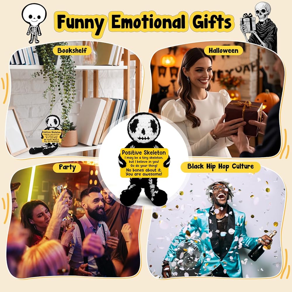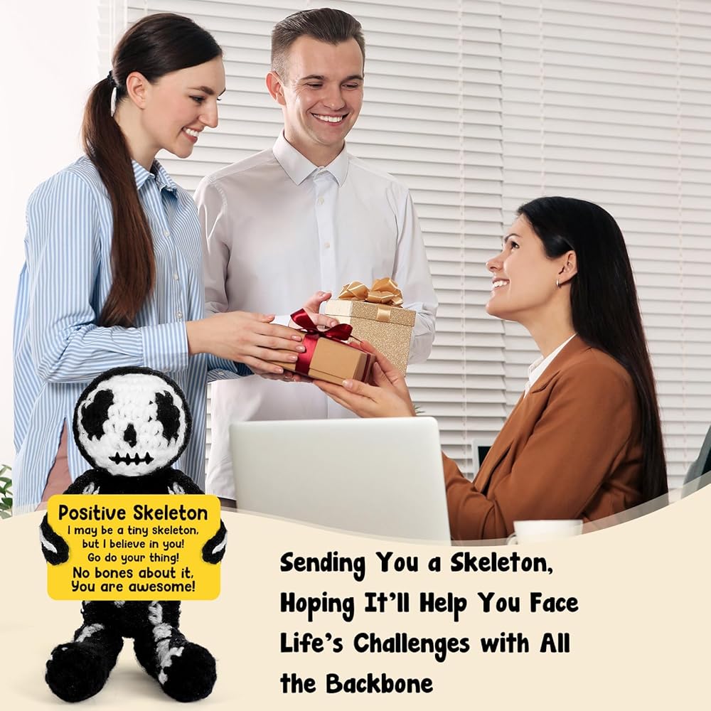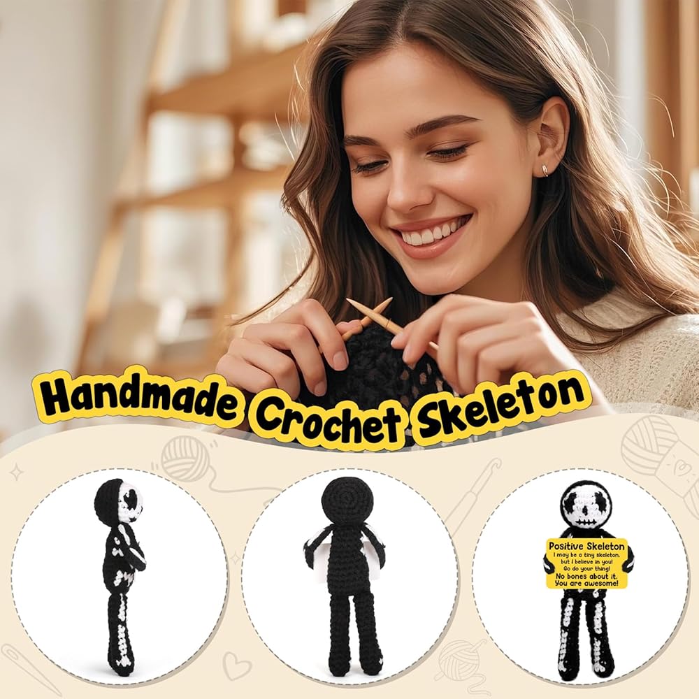 هدايا كروشيه إيجابية هيكل عظمي هدايا عيد ميلاد عيد ميلاد تقدير الأسبوع هدايا التخرج للنساء الرجال له ، هالوين قوطية ديكور خمر ، مراهقة صبي ديكور غرفة