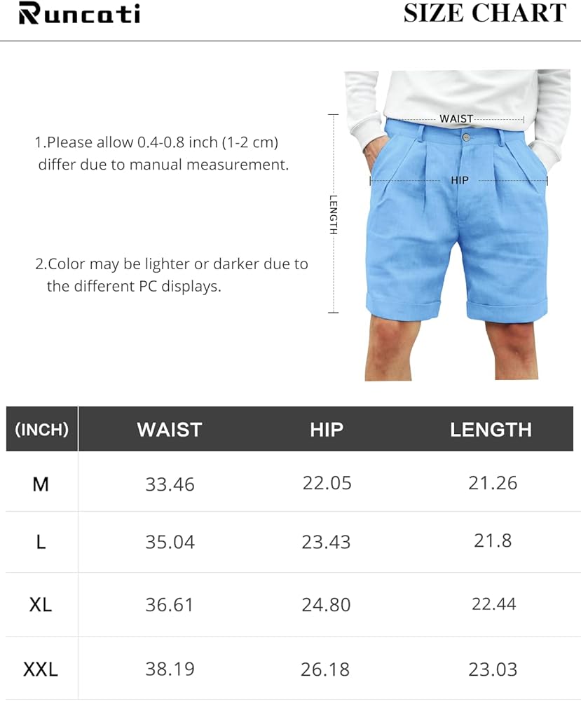 نسيج الكتان: شورت كاجوال للرجال خفيف الوزن ومسامي وناعم وصديق للبشرة، نسيج من القطن والكتان يقلل من الاحتكاك وعدم الراحة للجلد أثناء العرق في الصيف.