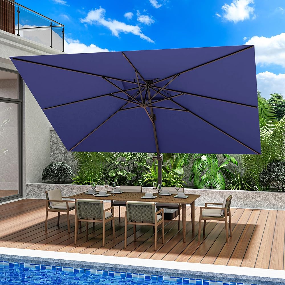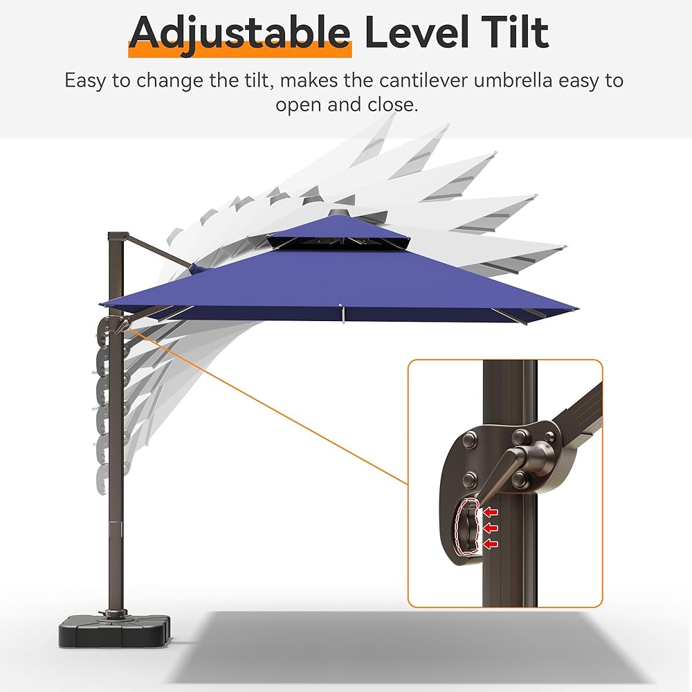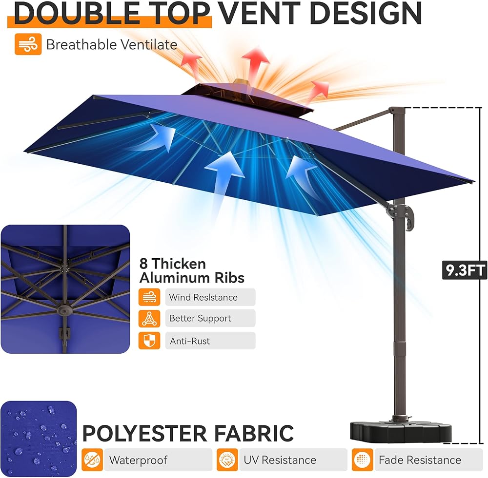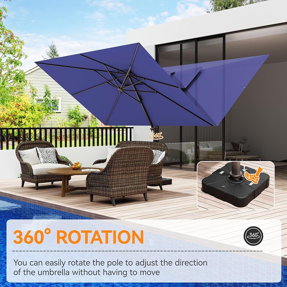 مظلة الفناء الكابولي: تشمل المظلة قاعدة قابلة للملء وقاعدة إطار فولاذية متقاطعة. لا تحتاج إلى شراء قاعدة إضافية. ملاحظة: نظرًا لأننا نشحن في حزمتين ، فقد لا تصل كلتا الحزمتين في نفس الوقت
