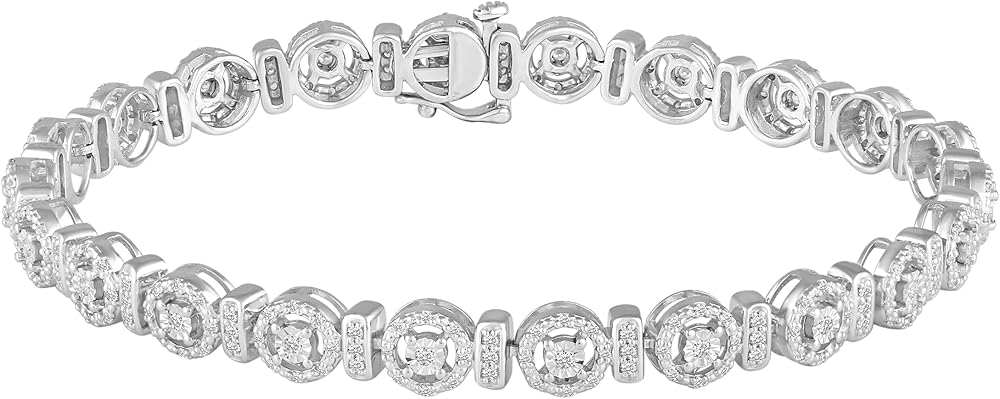 سوار تنس هالو من الماس الطبيعي عيار 1 قيراط من الفضة الاسترلينية عيار 925