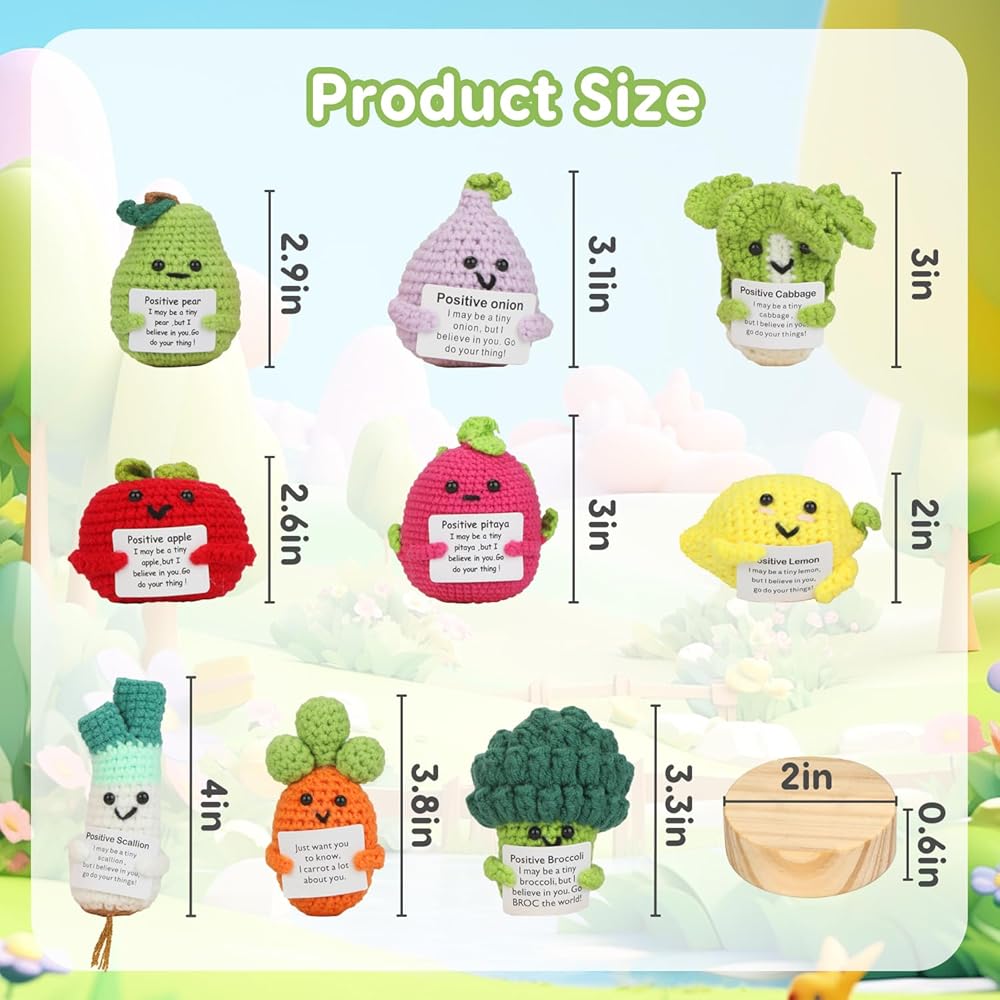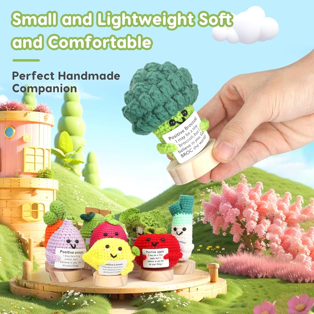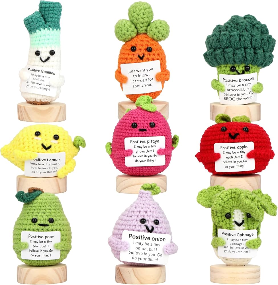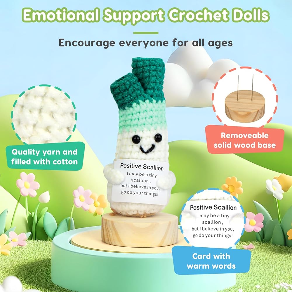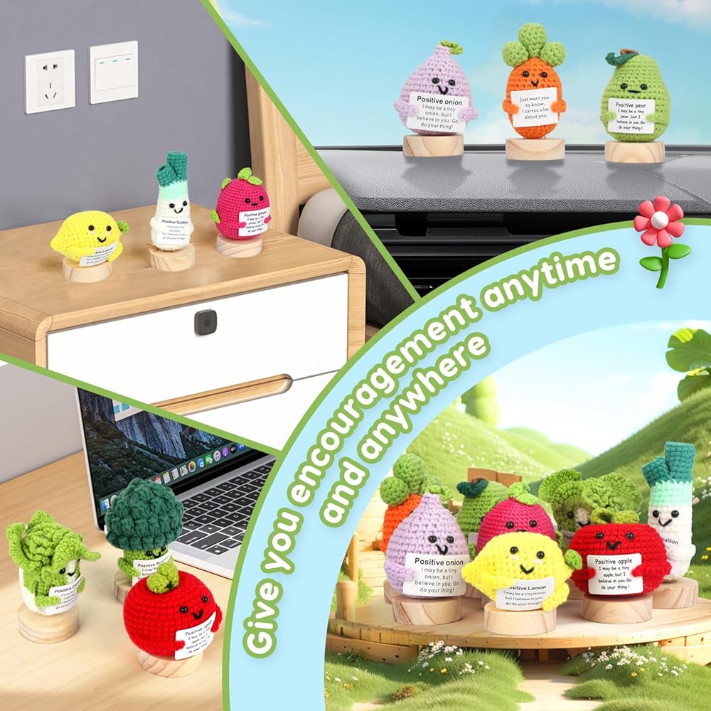 Each crochet doll is a one-of-a-kind design, hand-crocheted with quality wool yarn, and the bright colors and fun encouraging text cards make these emotional support dolls suitable for desktops, bookshelves, car decorations, wall hangings and more!