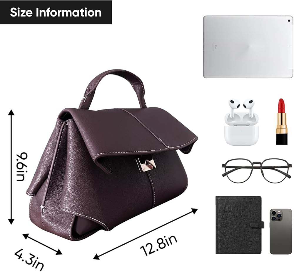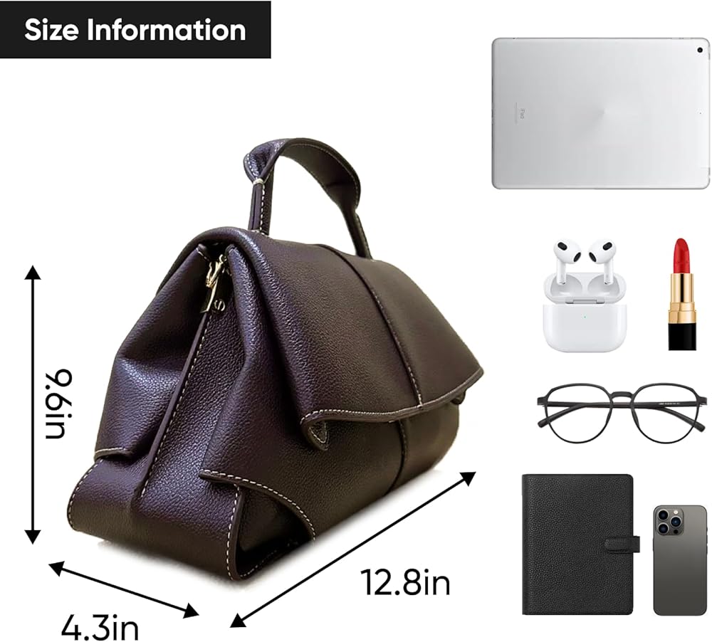 وظائف متعددة الاستخدامات: التكيف مع كل مناسبة بسهولة! تنتقل هذه الحقيبة الجلدية النباتية دون عناء من حقيبة يد إلى حقيبة كتف أو محفظة كروس. عند فتحه ، يتأمين المقبض العلوي مع المفاجئة ، مما يخلق شكل زلابية مميز يضيف إلى جماليته الأنيقة