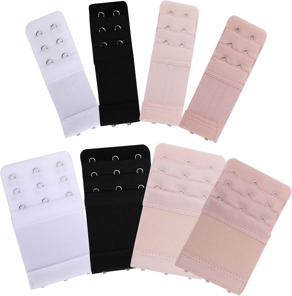 حمالة صدر Senkary 8 قطع 3 خطافات / خطافان و3 صفوف أشرطة تمديد مرنة للنساء للسيدات، 4 ألوان