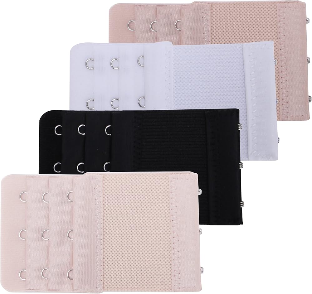 4 × 2 خطافات حمالة صدر 3 صفوف (أسود، أبيض، لون البشرة وبيج فاتح).