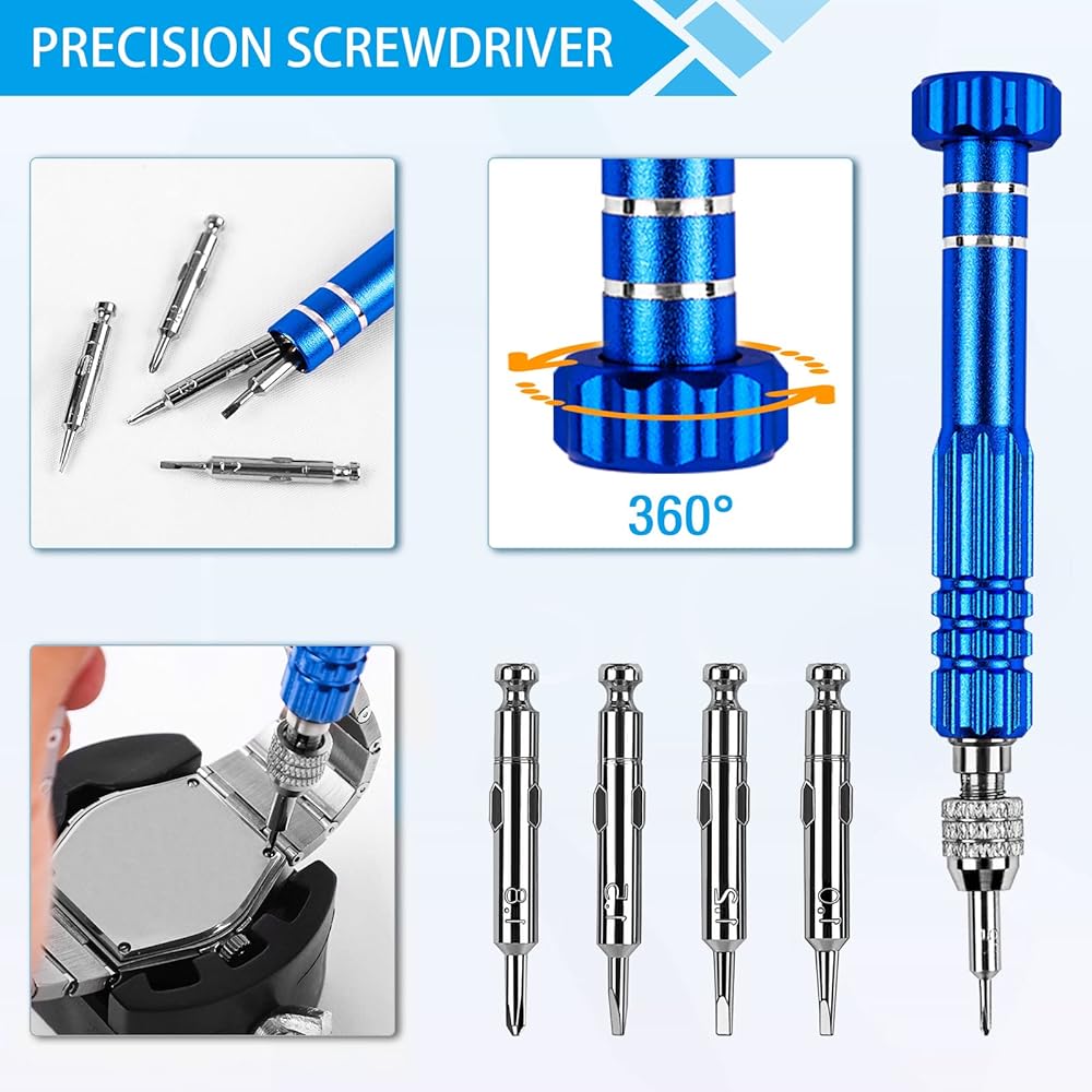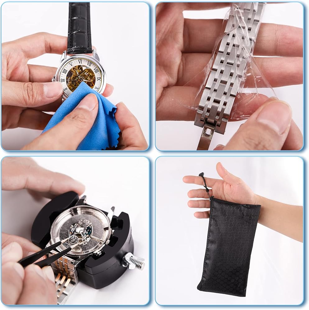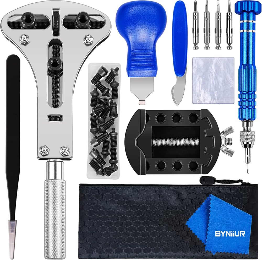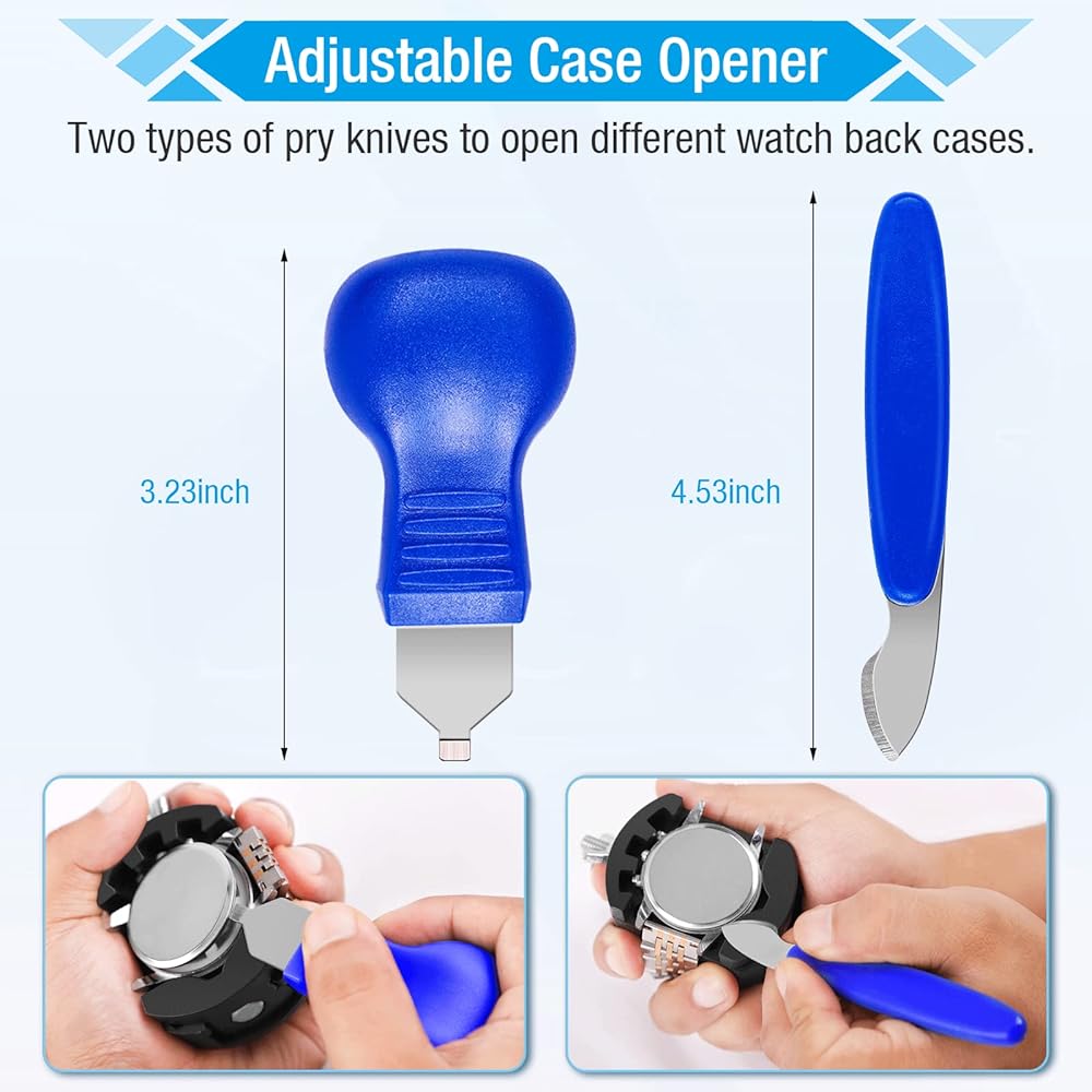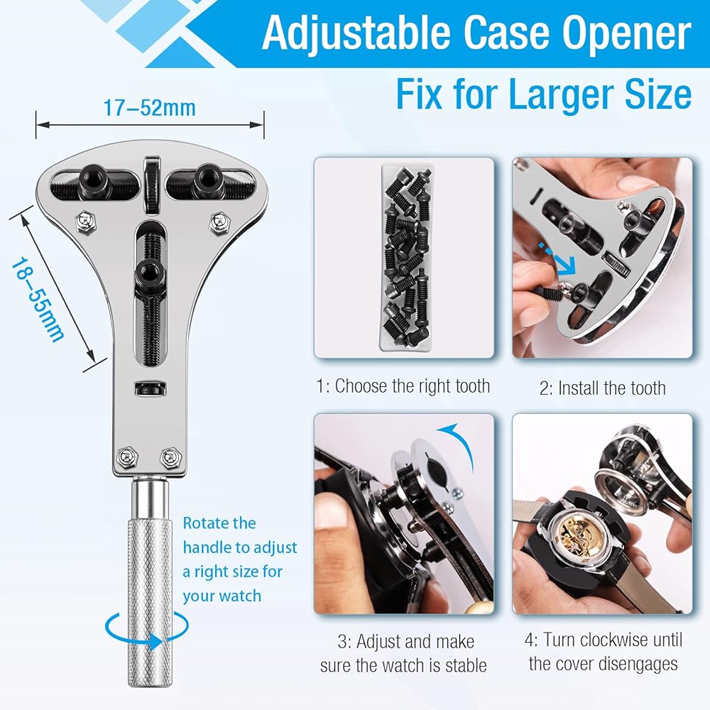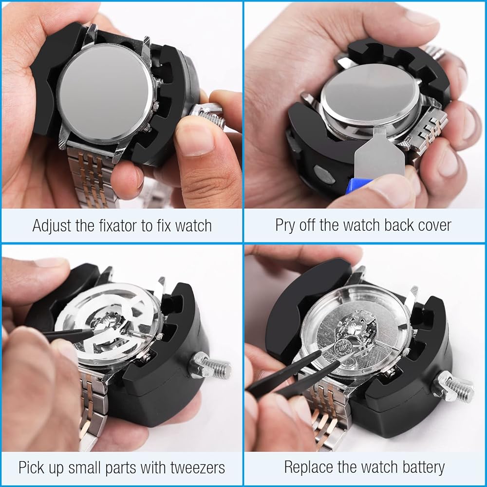 What happens if your watch needs a repair and it happens to be out of quality assurance period? Or when your timepiece stops telling accurate time, and you need to change a battery? The best watch repair kits are an affordable investment to make when you own a quality timepiece because it helps you to personally extend the life of the watch. Change the battery, replace the gasket, and many more repairs without the high cost of service with repair kits like these. Package included: 1 x Adjustable Case Opener 2 x case opening knives 1 x precision screwdriver 1 x tweezer 1 x case holder 1 x cleaning cloth.