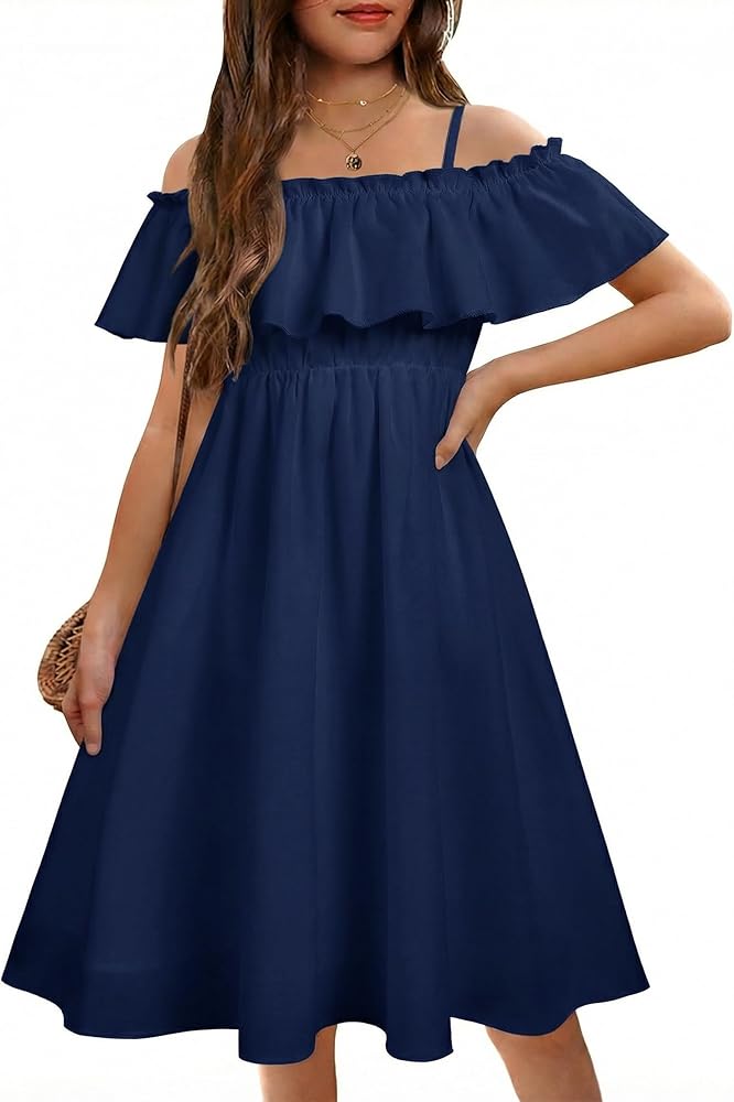 المواد: خفيف الوزن، وواسع، ومريح ولكن لا يمكن الرؤية من خلاله. هذا الفستان ذو الكتف البارد مصنوع من الشيفون عالي الجودة وعالي الكثافة. القماش نفسه غير قابل للتمدد، لكن فستان الخصر المرن سيناسب جسم فتاتك جيدًا. سوف يتدفق هذا الفستان غير الرسمي عندما تمشي ويشعر بالراحة على بشرتها الناعمة.