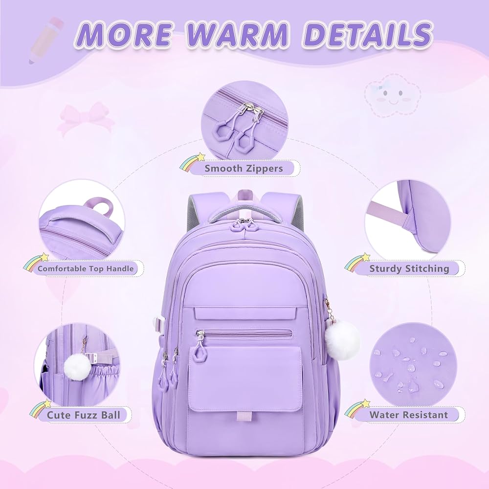 【حقيبة الظهر متعددة الجيوب الفتيات】 يتيح تصميم المساحة المتعددة الطبقات ذات السعة الكبيرة التخزين المنظم للأعمال اليومية أو الدراسة أو عناصر السفر. تناسب المقصورة الرئيسية لحقيبة ظهر الفتيات كمبيوتر محمول بحجم 15.6 بوصة ، في حين توفر جيوب السوستة الخارجية وجيوب كبيرة واحدة مساحة تخزين إضافية ، كما أنها تتميز بجيوب المياه المائية على كلا الجانبين ، مما يساعد طفلك الصغير بسهولة في الوصول إلى الكمبيوتر المحمول والكتب وغيرها من الضروريات في أي مكان يذهبون إليه.