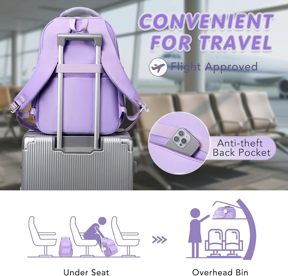 【مريح لارتداء】 مصمم للراحة طوال اليوم ، تم تصميم حقيبة الظهر هذه من البوليستر عالي الجودة للماء للحفاظ على أغراضك جافة. يسمح غلاف الأمتعة المدمج بالسفر بدون اليدين عن طريق الانزلاق بسلاسة على مقابض حقيبة ، في حين أن تصميمه المدمج والوحشية يناسب دون عناء في مقصورات الطائرات أو تحت المقاعد. لمزيد من الأمان ، يحافظ جيب مكافحة السرقة السار على الأشياء الثمينة.
