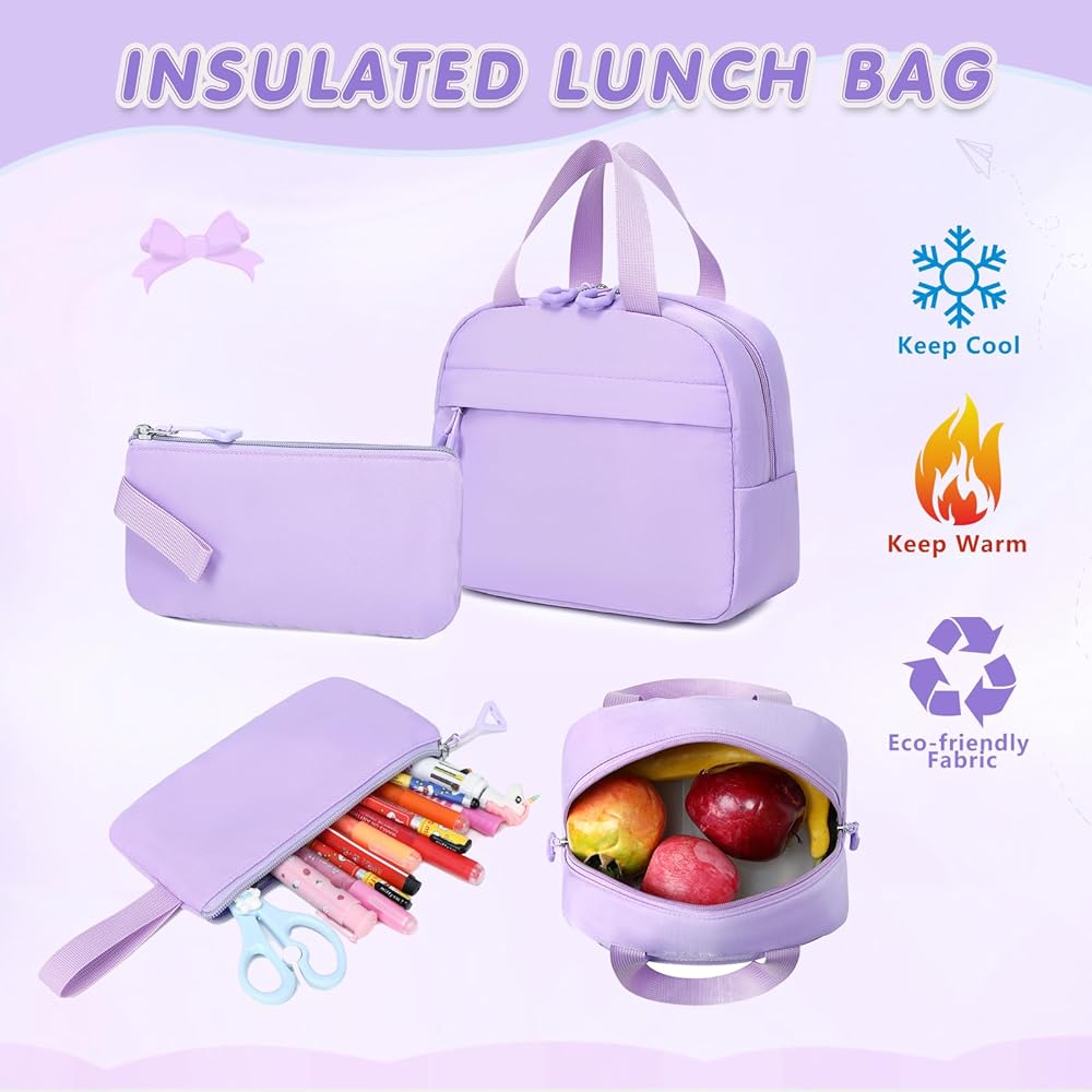 【حقيبة ظهر للبنات مع حقيبة الغداء】 شراء حقيبة الظهر هذه للفتيات ، ستحصل على حقيبة تحمل على الظهر الفتيات الأنيقة مع حقيبة غداء معزولة وحقيبة قلم رصاص. سيتم تجهيز Munchkin الخاص بك بالكامل بكل ما تحتاجه للفصل والكافتيريا مع مجموعة حقيبة الظهر الفتيات 3 في 1. التصميم الأنيق والميزات الوظيفية يجعلها مناسبة لمختلف المناسبات ، بما في ذلك المدارس والتخييم والتسوق وركوب الدراجات والسفر.