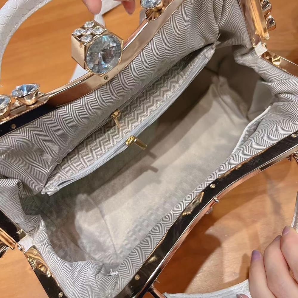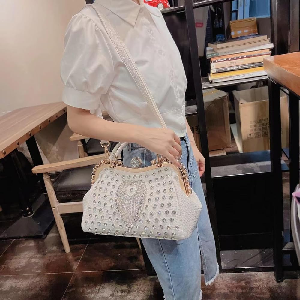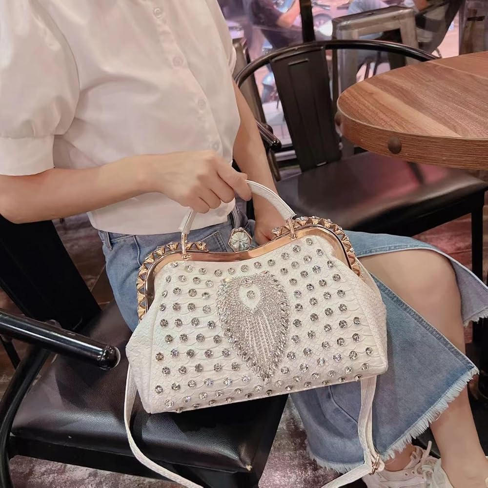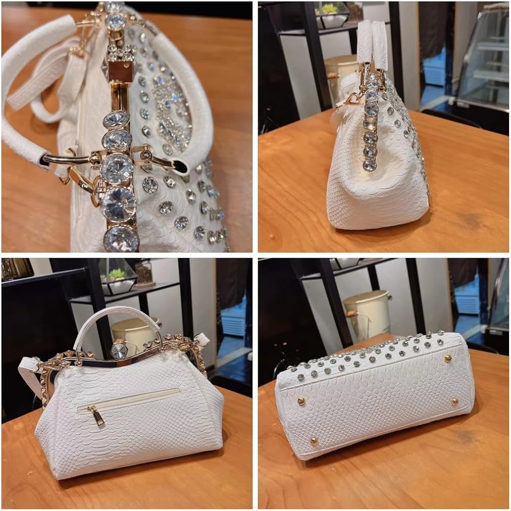 Luxury Fashion Diamonds Bag For Women Leather Top Handle Satchel Handbags Clip Rhinestone Purses Tote Shoulder Messenger Bags The bag is decorated with very shiny rhinestones, dazzling and gorgeous