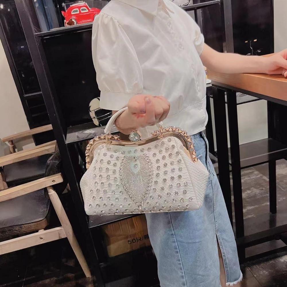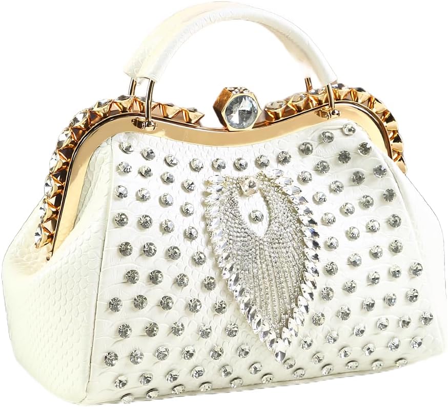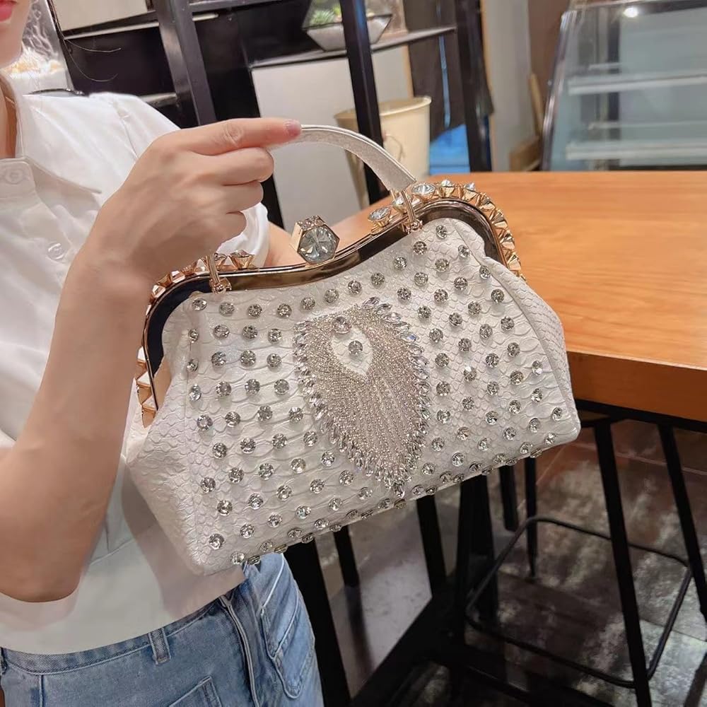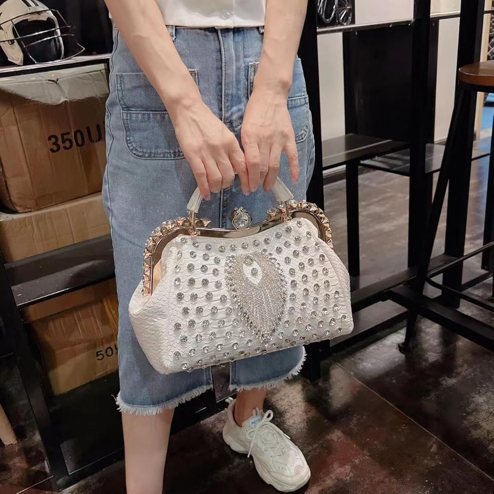 Luxury Fashion Diamonds Bag For Women Leather Top Handle Satchel Handbags Clip Rhinestone Purses Tote Shoulder Messenger Bags The bag is decorated with very shiny rhinestones, dazzling and gorgeous
