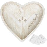 EXQUISITE PRAYER BOWLS: The center of this wooden heart bowl features beautifully carved cross, showcasing the beauty of faith. The accompanying 24 prayer cards and anti slip pad make it a spiritual sustenance for your spiritual life, accompanying you devoutly to record every moment of prayer and whitewashed prayer bowls witness the small moments of grace and blessings in life.