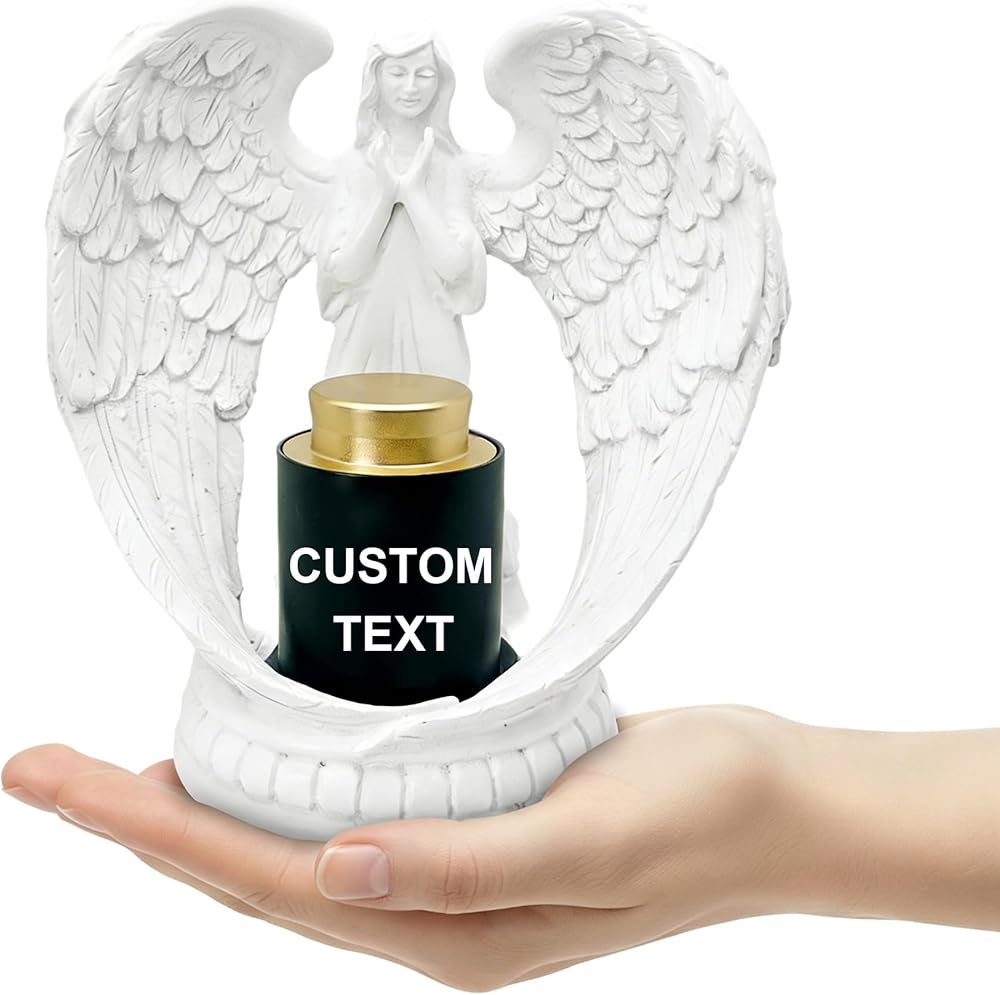 【قاعدة تمثال الملاك الصلاة】 هذا الجرة الصغيرة للرماد للنساء/الأم/الجدة/الإناث يجمع بين تمثال ملاك حساس - مفصل بشكل مقلد مع الأجنحة الريش وأيدي الصلاة - لخلق تذكار القلبية للتذكر.