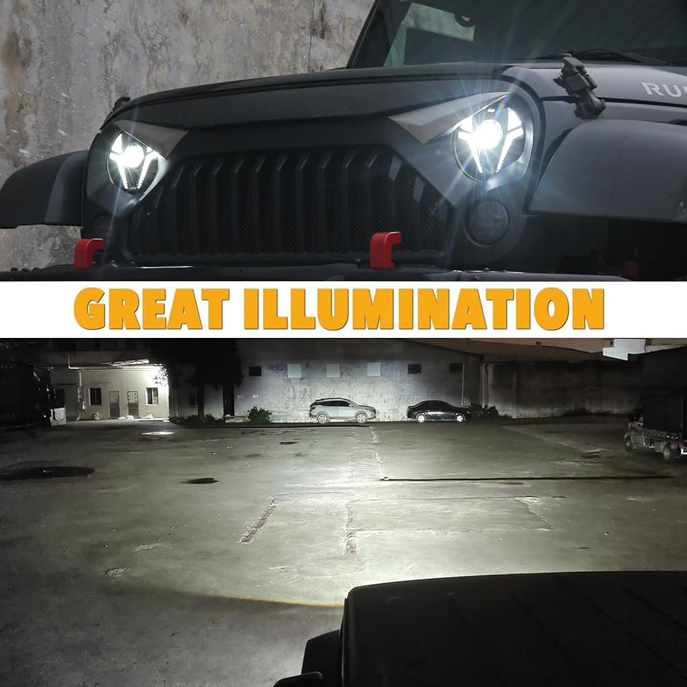 الجودة العالية: المصباح الأمامي 7 بوصة مصنوعة من السكن المختومة من الألومنيوم ديكاست ، وعدسة متين ومتينة ، ومقاومة للصدمات ، ومقاومة للغبار ، ومقاومة للماء IP67 ؛ التصميم المضلع للتبريد الفعال ، تبديد حرارة أفضل , مدى الحياة فوق 50000 ساعة ؛