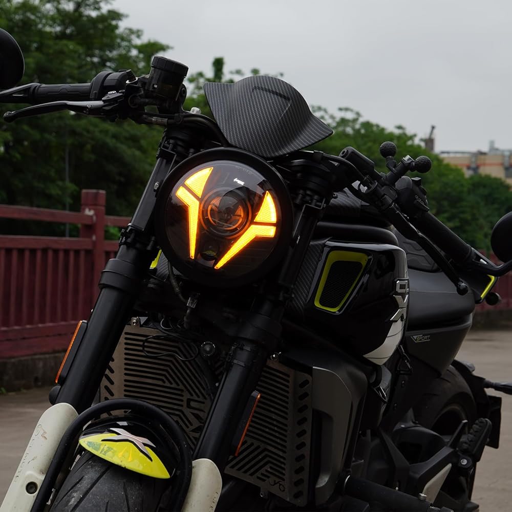 أحدث تصميم خاص للأصباح الأمامي: يختلف المصباح الأمامي للليزر تمامًا عن المصابيح الأمامية الأخرى ، وينتشر دراجة نارية واسعة وأكثر أمانًا في جميع أنحاء المدينة بسبب الرؤية العالية للضوء ؛ إن إدراج إشارات DRL البيضاء وإشارات دوران العنبر يعزز الرؤية بشكل أكبر ، مما يضمن أن سائقي السيارات الآخرين يدركون نواياك على الطريق ؛