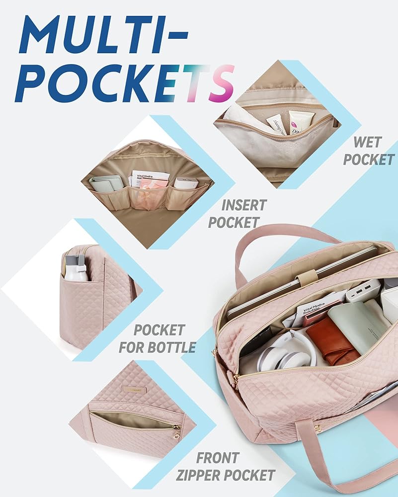 مساحة واسعة - منطقة نمط الحياة: يمكن أن تناسب حقيبة عطلة نهاية الأسبوع 2-4 أيام من الضروريات اليومية. يمكن وضعها بسهولة في ملابسك ومستلزمات النظافة والأحذية.