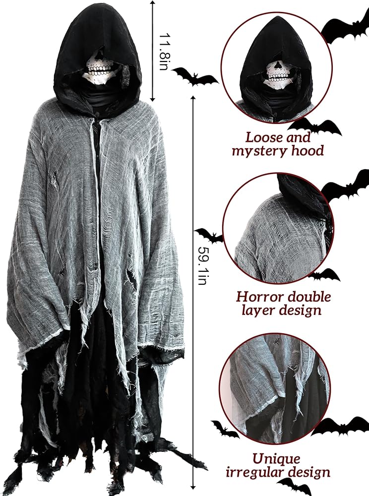 • مليء بالغموض: يتكون عباءة مقنعين من المواد عالية الجودة ، ومصممة مع النسيج الأسود وشبكة ثقب بيضاء ، يمكن أن يعرض تصميم الطبقة المزدوجة شعورًا بالرعب والغموض. تعزيز واقعية ورعب أزياء شخصيتك ، مما يضيف إحساسًا بالإرهاب إلى حفلة عيد الهالوين الخاصة بك.