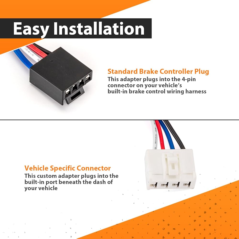 Easy to Install: No cutting or splicing required, just plug the brake control end of the harness into the electric brake controller and the vehicle end into the built-in port under the vehicle dashboard