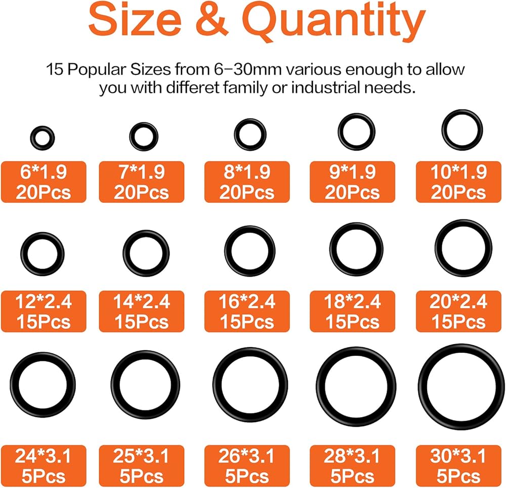 💎【 O R REARS ENSITES】 تحتوي مجموعة "O Ring Confortment" على ما مجموعه 200 ٪ ، بما في ذلك 15 نوعًا من الحشيات ومطاط الختم. حلقات المطاط O مقاومة للماء ، ومقاومة للزيت والحرارة والبنزين وزيت الدهون. لديهم خصائص ختم ممتازة ومقاومة للتآكل والكهرباء الثابتة والتشوه ، مما يضمن عمر خدمة أطول.