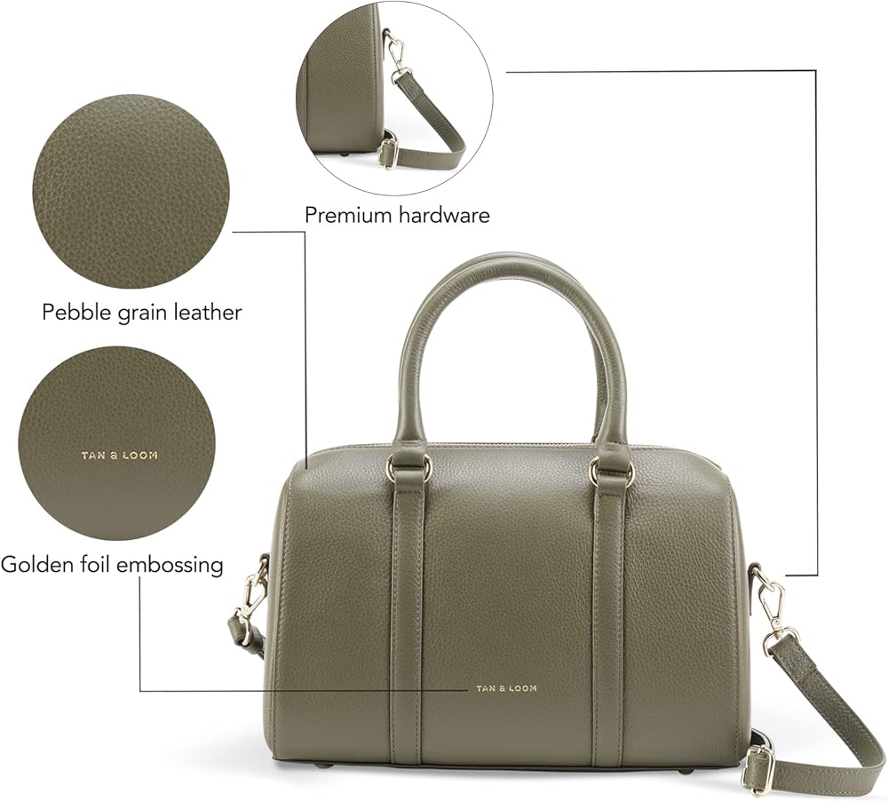 الميزات الرئيسية: إغلاق بسحاب علوي، وجيب داخلي منزلق وجيب بسحاب، وحزام كتف طويل قابل للإزالة والتعديل، وبطانة من قماش الجاكار بشعار Tan & Loom المخصص.