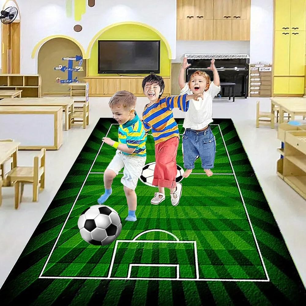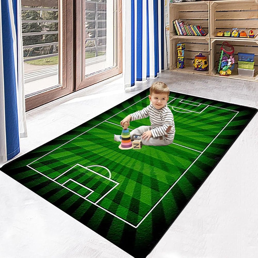 سجاد سجاد كرة قدم كرة قدم لكرة القدم للأولاد غرفة نوم ، سجاد منطقة للعب غرفة اللعب ، غرفة معيشة غير قابلة للانزلاق ، ديكور كرة قدم خضراء كرة قدم 3x5ft/90x150cm
