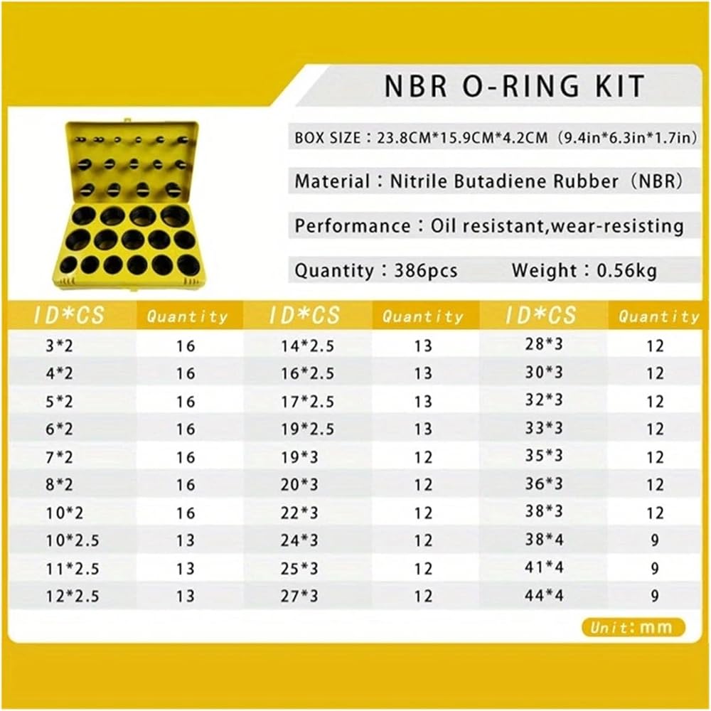 Black Rubber Ring 30Size Nitrile O-ring Seal Washer Sealing NBR O-ring Gasket Red/Blue/Yellow Assortment Set Kit Box