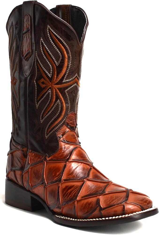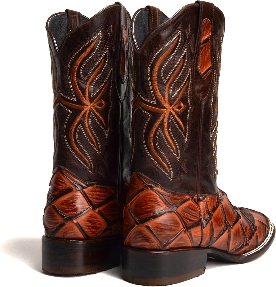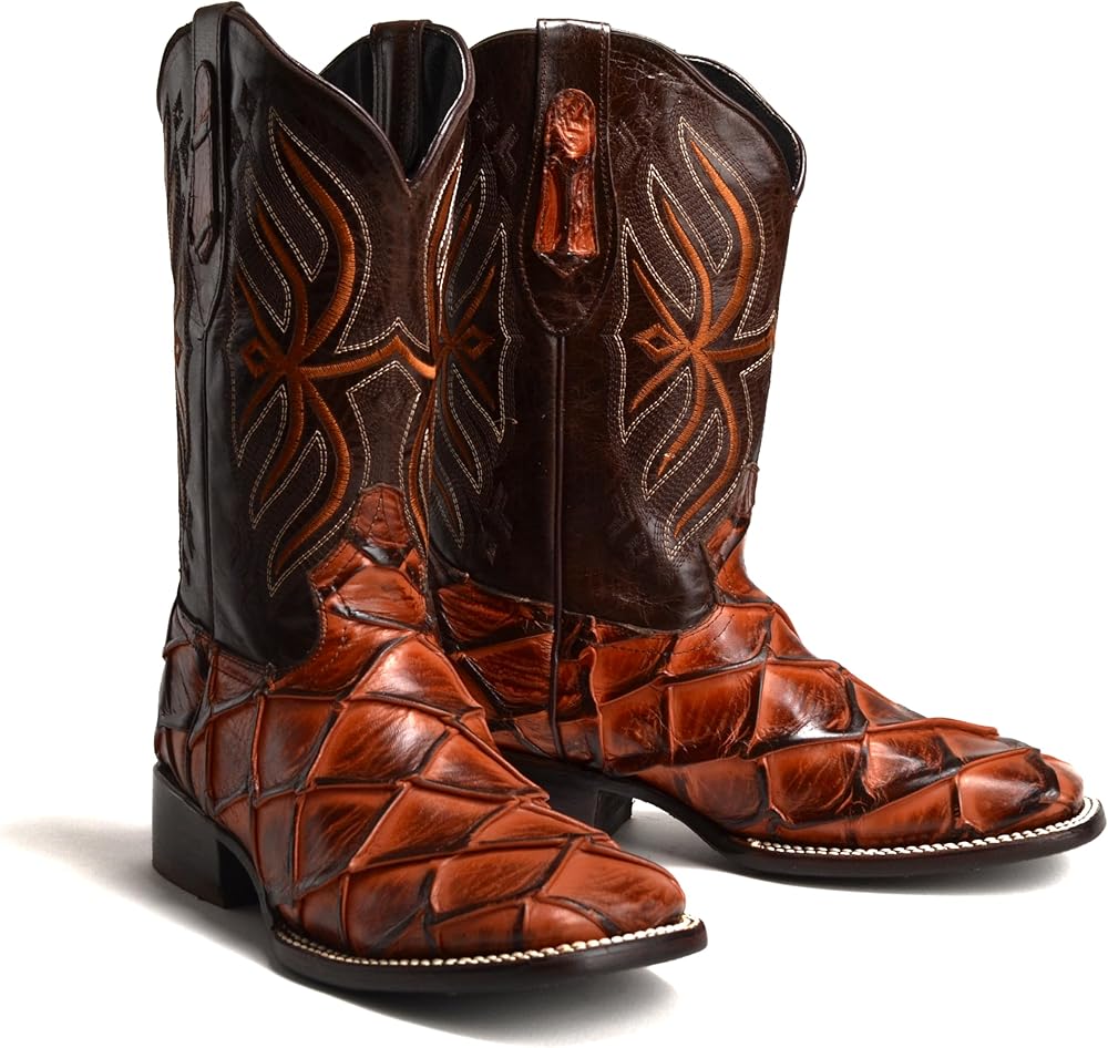 Step into style and comfort with these exotic genuine leather pirarucu print cowboy boots, perfect for the rodeo or everyday wear. Crafted from premium leather, these boots offer a distinctive texture and long-lasting durability. The handcrafted design features detailed embroidery along the shaft, adding a touch of Western flair, while the cushioned insole ensures all-day comfort. With a durable rubber outsole and a sturdy heel, these boots are built to handle tough terrain, making them perfect for ranch work, riding, or a night out. Elevate your Western wardrobe with these authentic pirarucu print cowboy boots.