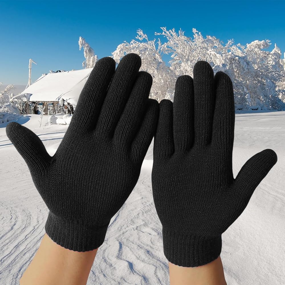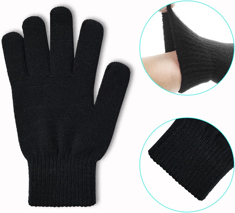 SHALEDOW 3 أزواج من قفازات محبوكة حرارية سوداء سحرية مرنة للجنسين، قفازات ثلج شتوية دافئة بأصابع كاملة للرجال والنساء (متوسط)