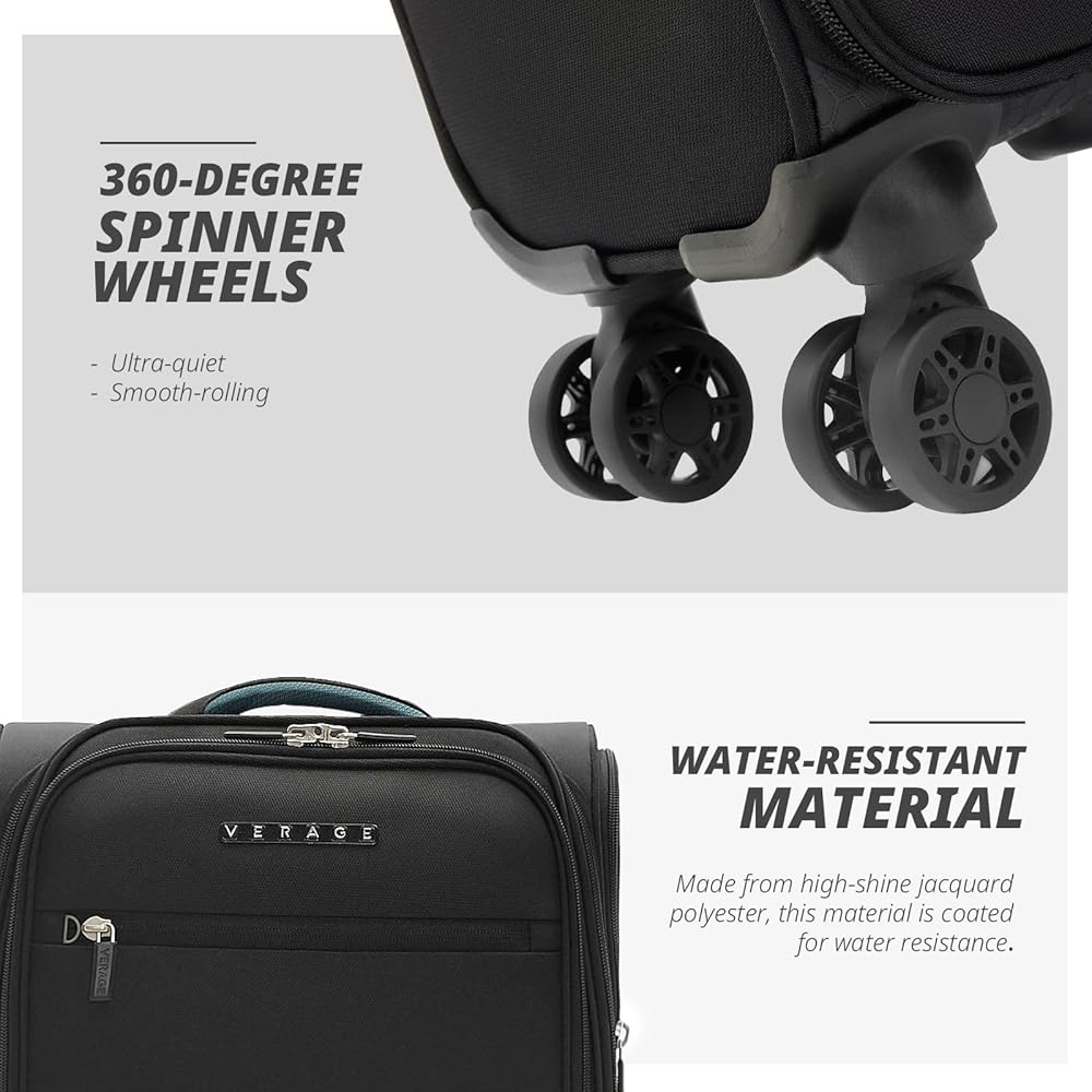 Verage تحت أمتعة المقعد مع عجلات ، ساحة Softside Small Spinner تحمل أكياس أمتعة لطائرات شركات الطيران الرحلة القصيرة للنساء (الأسود ، تحت القماع 14 بوصة)