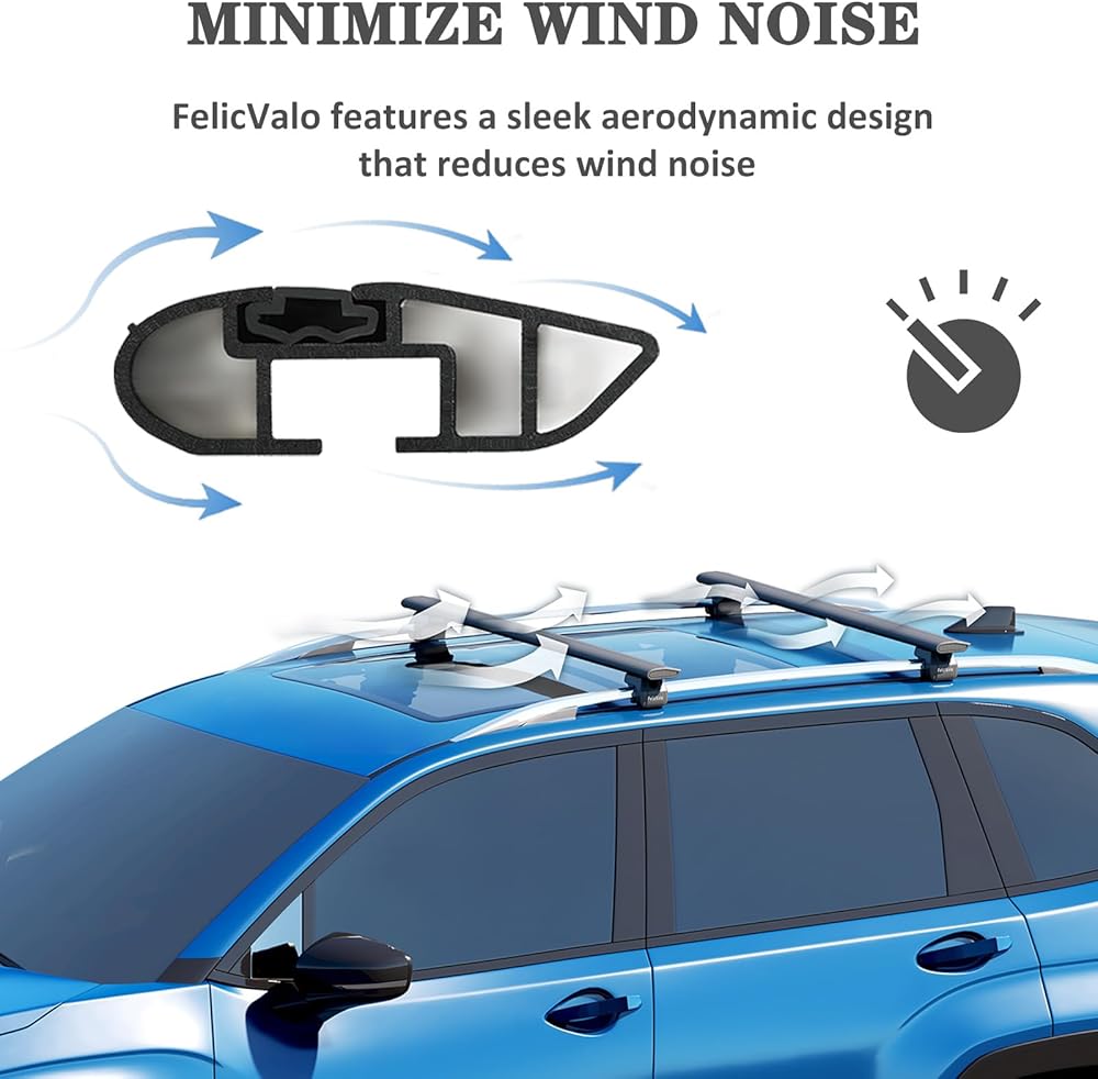 ✔ 【قلل من ضوضاء الرياح】】: توفر عارضات رف سقف فيليكفالو ملف تعريف ديناميكي يقلل بشكل كبير من ضوضاء الرياح. دعك تركز على متعة القيادة والاستمتاع بالرحلة.